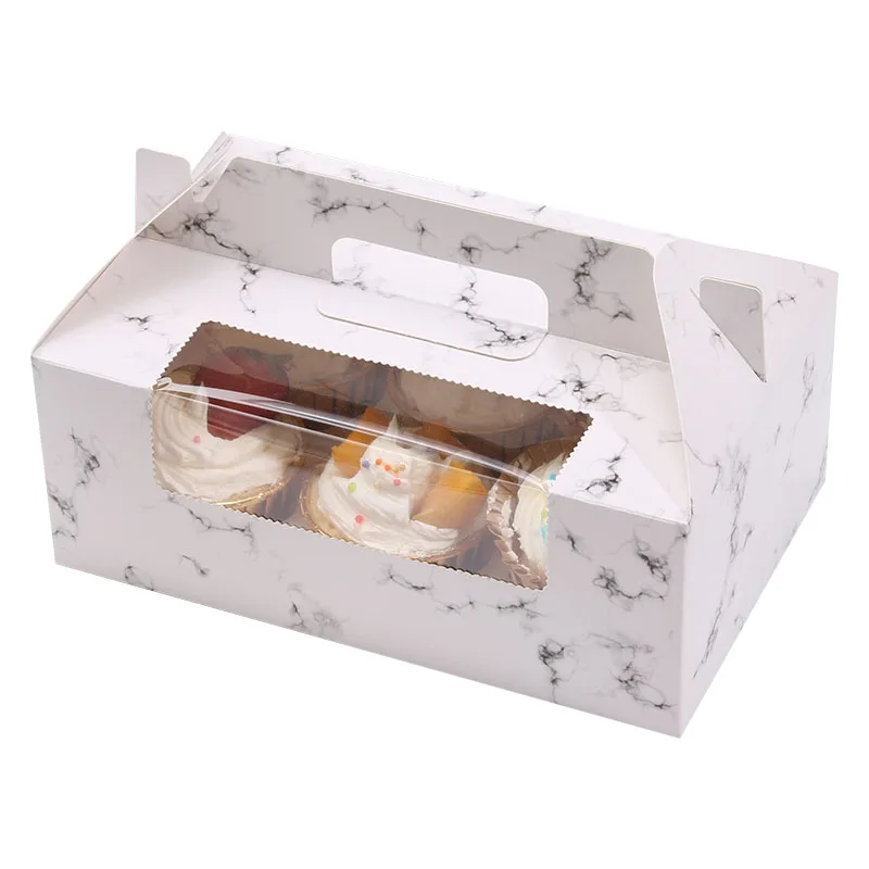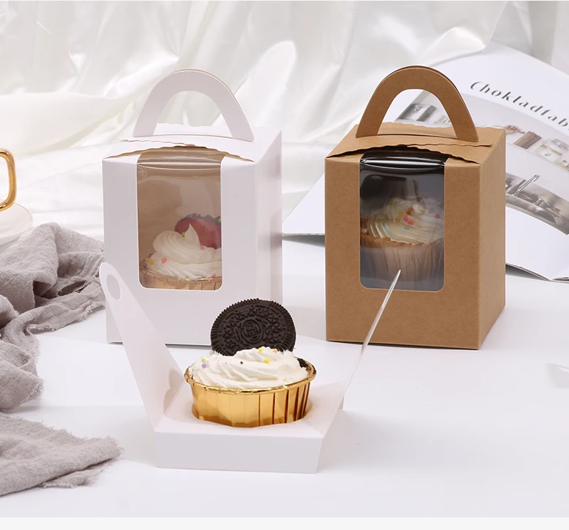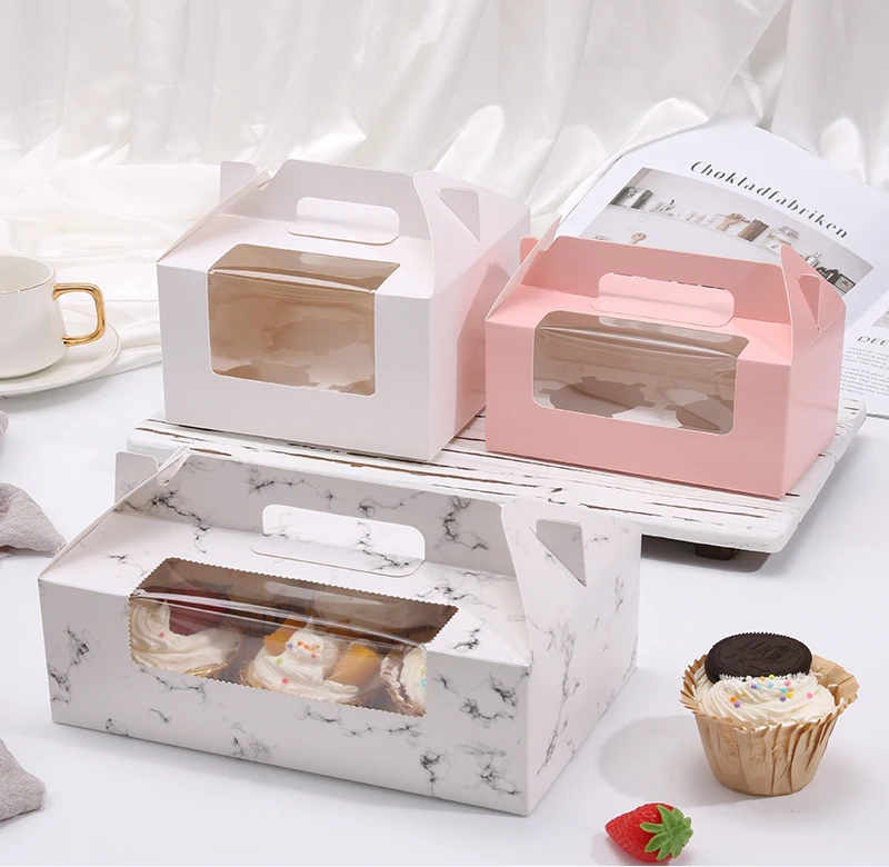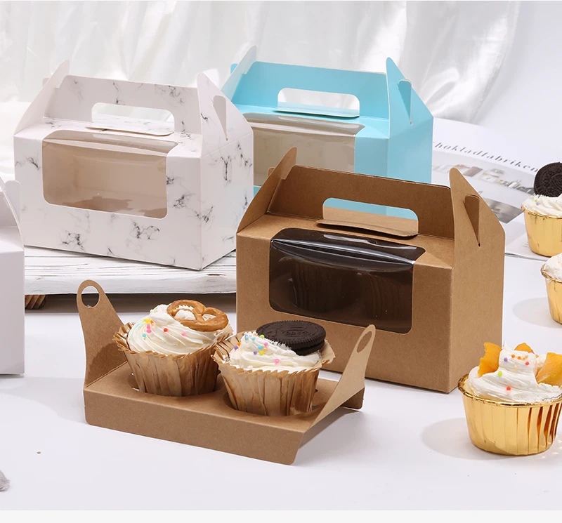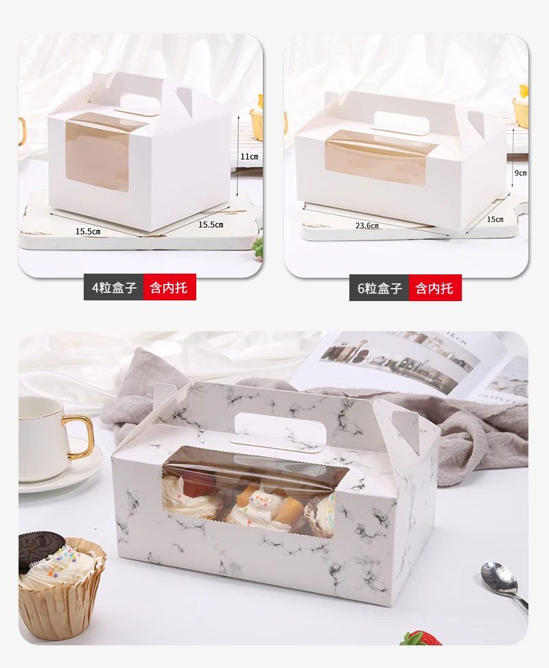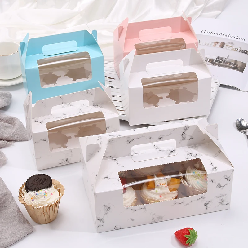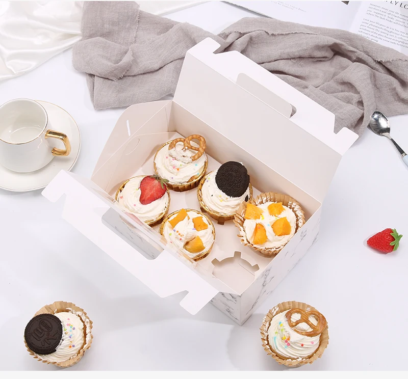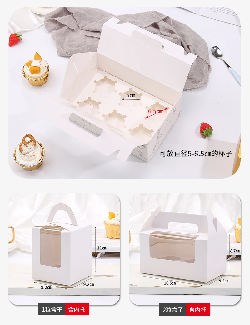 Get 10/20pcs Paper Cup Cake Box 1/2/4/6 holes Transparent Window Muffin Box White Cardboard Portable Baking Packaging Box
