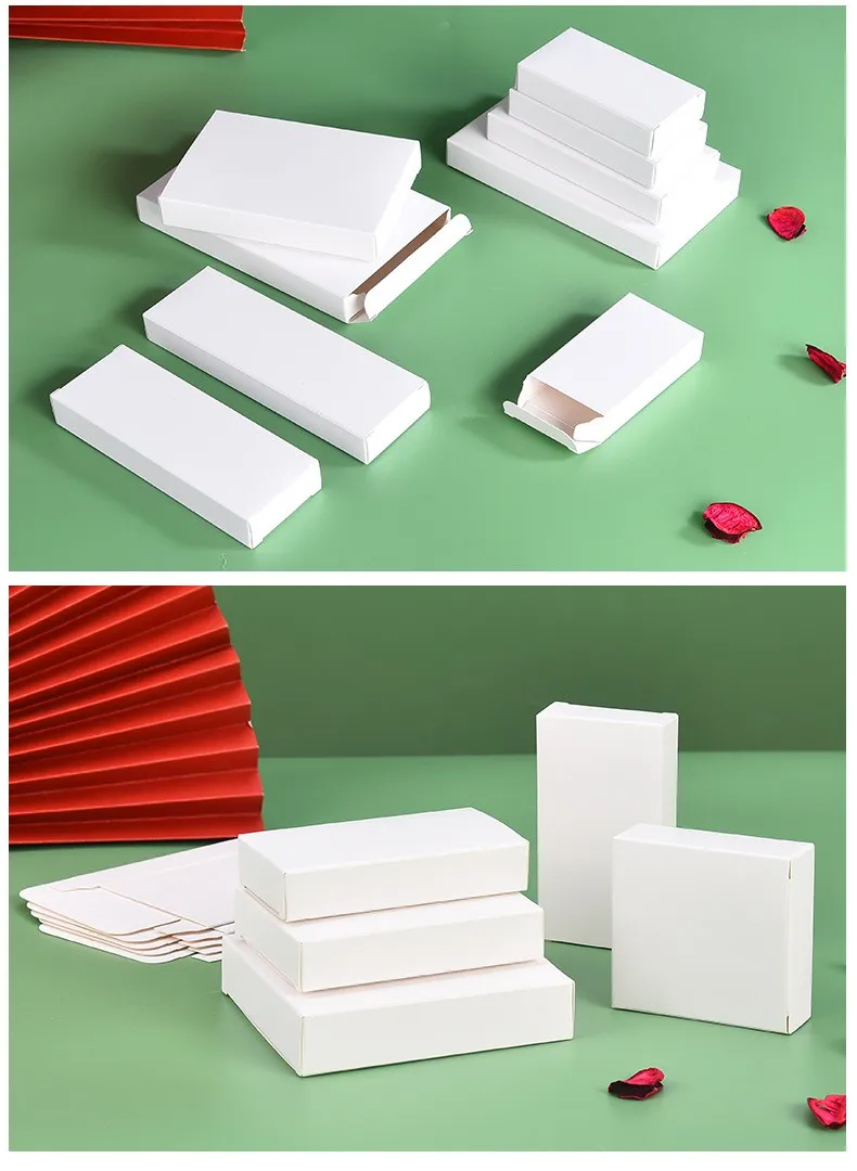 Get 50pcs Flat Style White Box Universal Rectangle White Small Carton Double Insert Box 3cm Width Gift Packaging Boxes