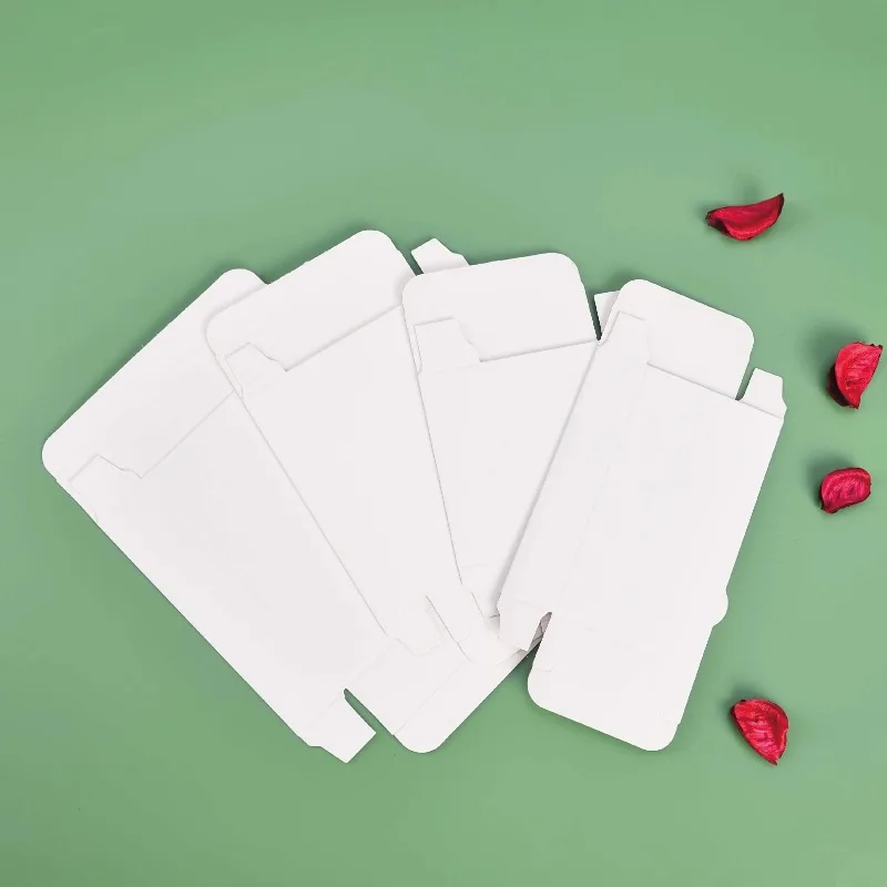Get 50pcs Flat Style White Paper Box Universal Rectangle Small Carton Double Insert Box 3cm Width Gift Packaging Boxes