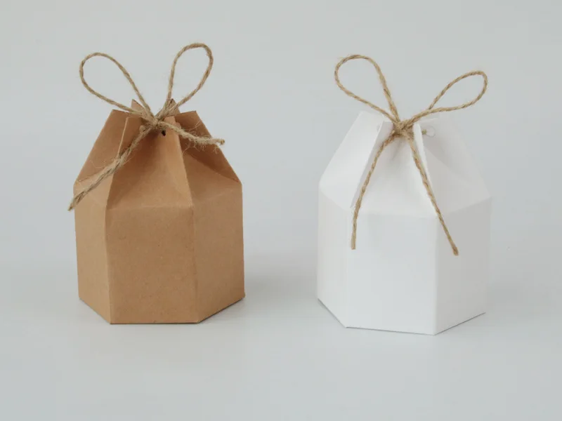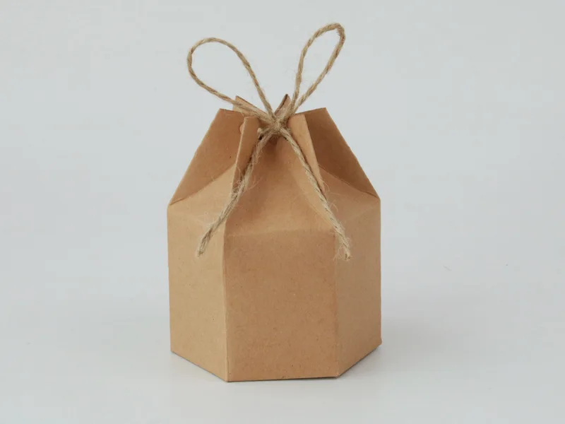 Get 50pcs Kraft Paper Package Cardboard Box Lantern Hexagon Candy Box Favor And Gift Wedding Christmas Valentine’s Party Supplies