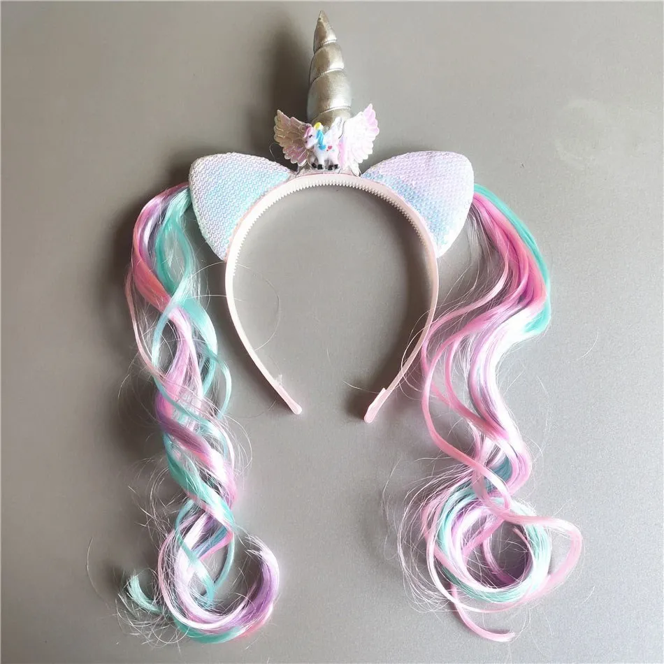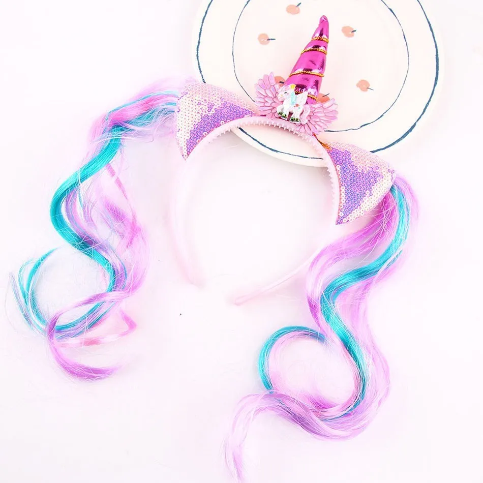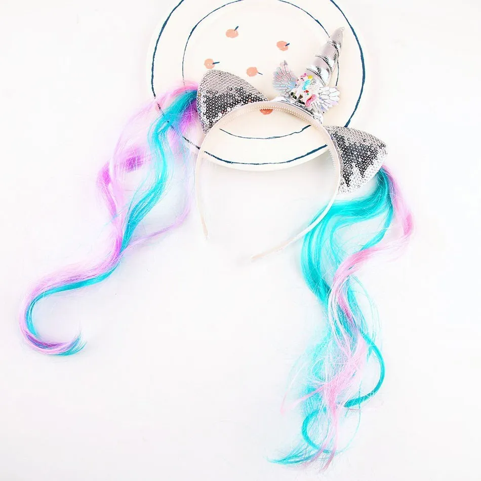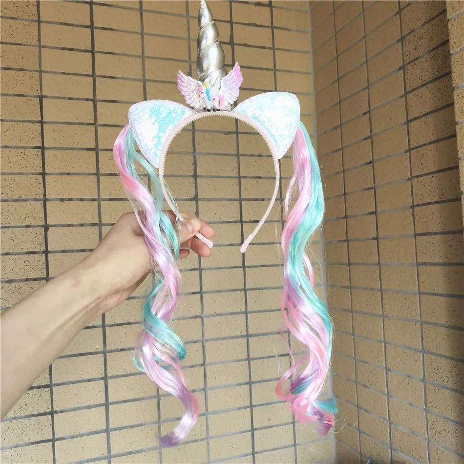 Items Name: Girl Headband Kids Candy Color Sparkle Sequins Unicorn Braid Children Christmas Rainbow Hair Accessories Baby Birthday Hair Band