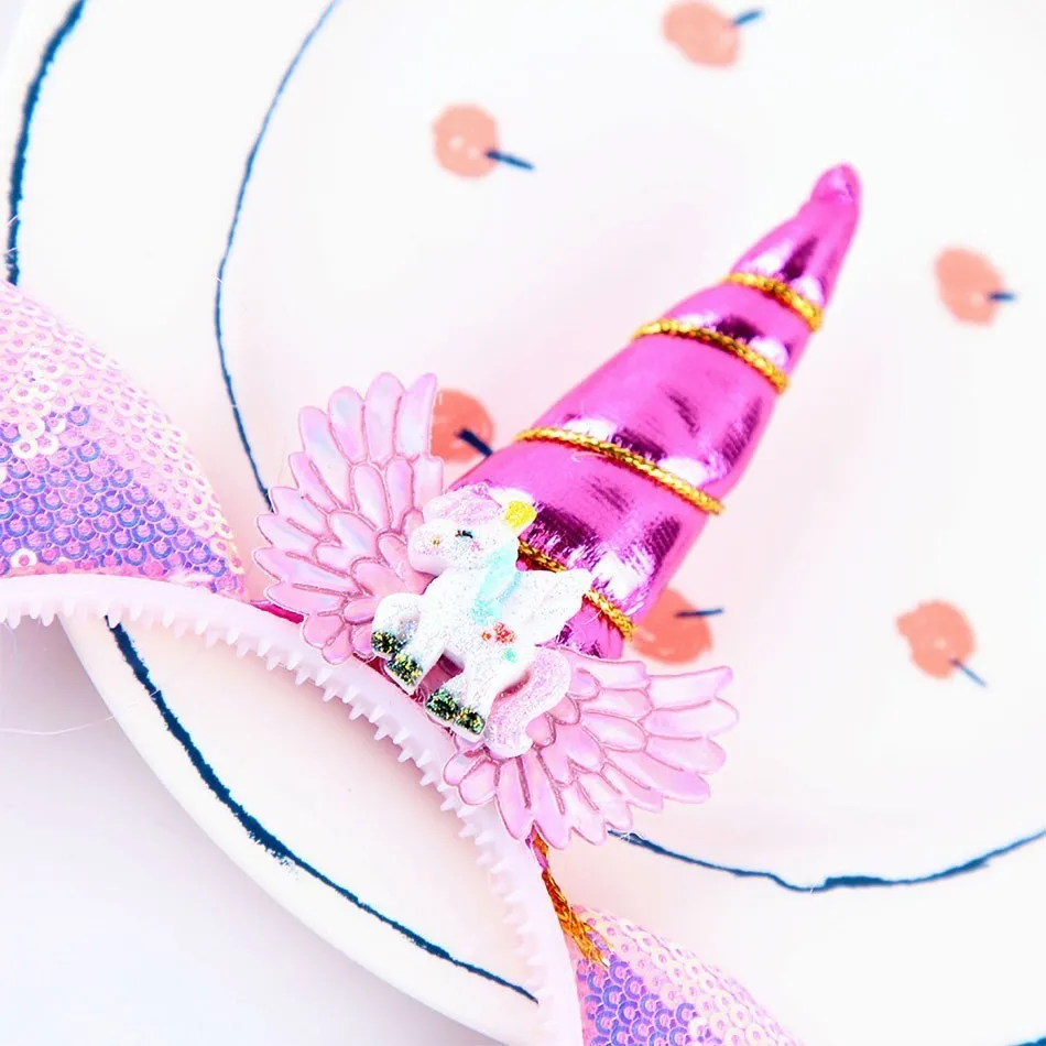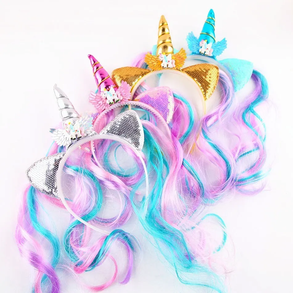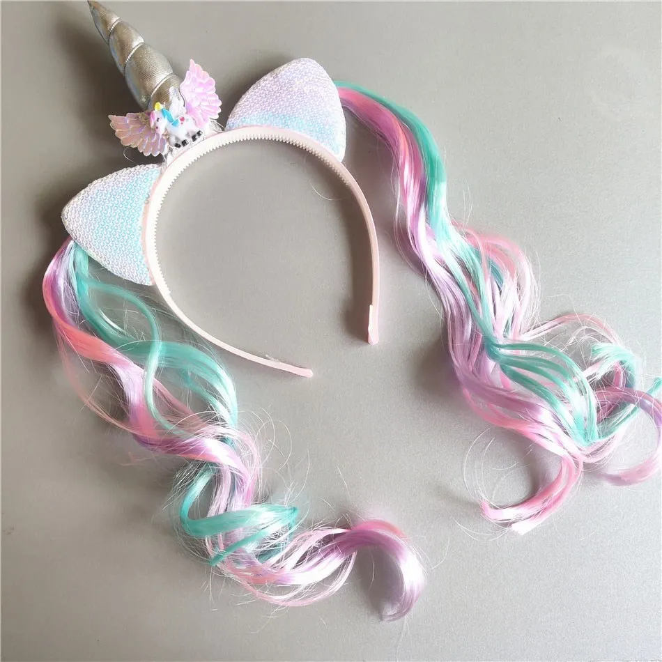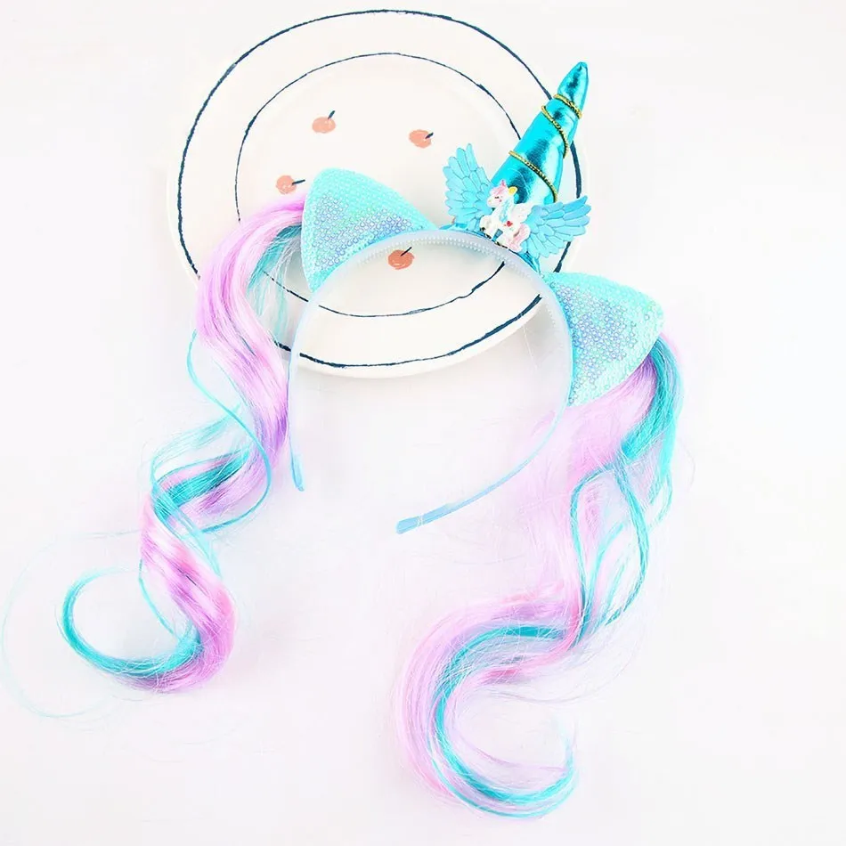Items Name: Girl Headband Kids Candy Color Sparkle Sequins Unicorn Braid Children Christmas Rainbow Hair Accessories Baby Birthday Hair Band
