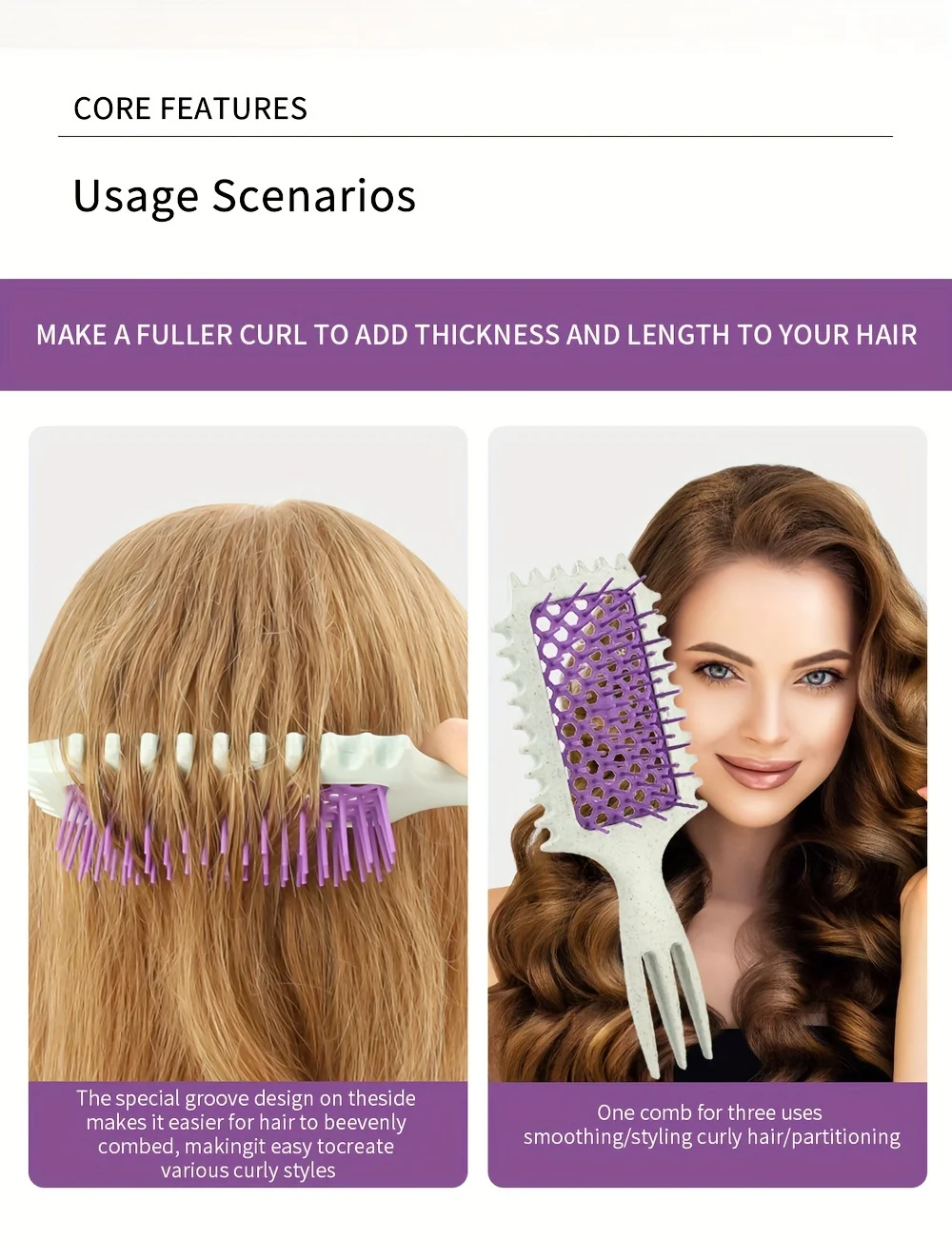 Hair Combs Set 3-in-1 Normal Hair – Hollow Design Curl Enhancing Styling Comb with Massage Feature for Parting and Hair Styling