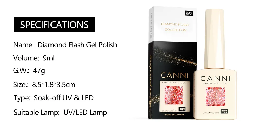 CANNI 9ml hema free super diamond sparkle glitter nail gel polish