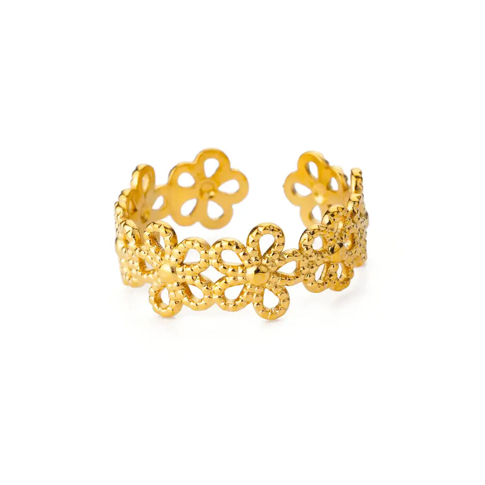 Hollow Flower Rings For Women Gold Color Stainless Steel Adjustable Multi-layer Flower Ring Wedding Aesthetic Jewelry Gift