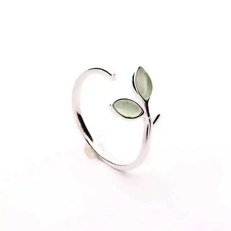 Hot Sale Korean Green Opal Leaf Leaves 925 Sterling Silver Open Rings for Women Girls Ladys Fashion Jewelry Gift YRI135