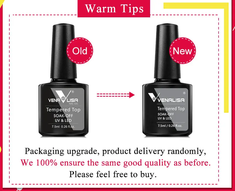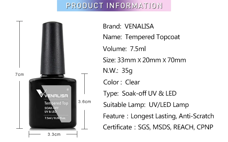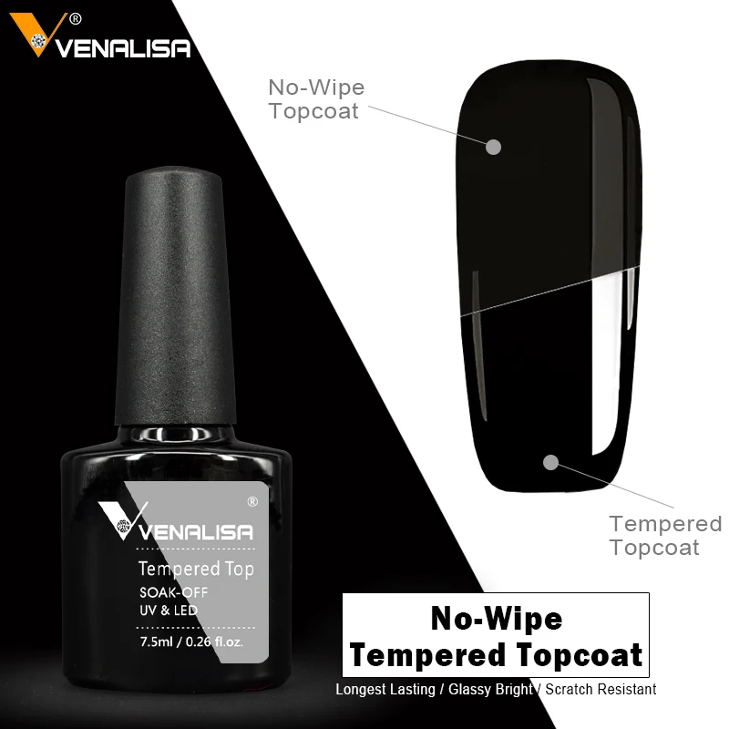 Hot Sell Venalisa Nail Art 7.5ml Tempered Top Coat Matt Top Primer Base Coat Color Gel Nail Polish UV Gel Soak Off Manicure