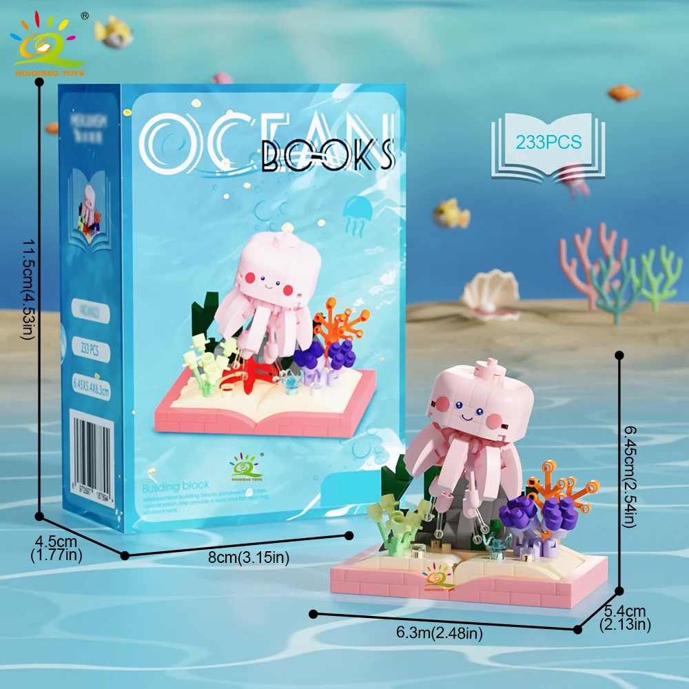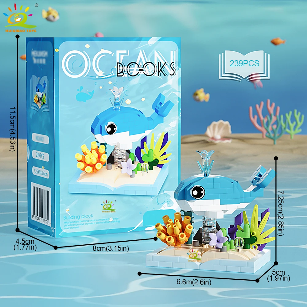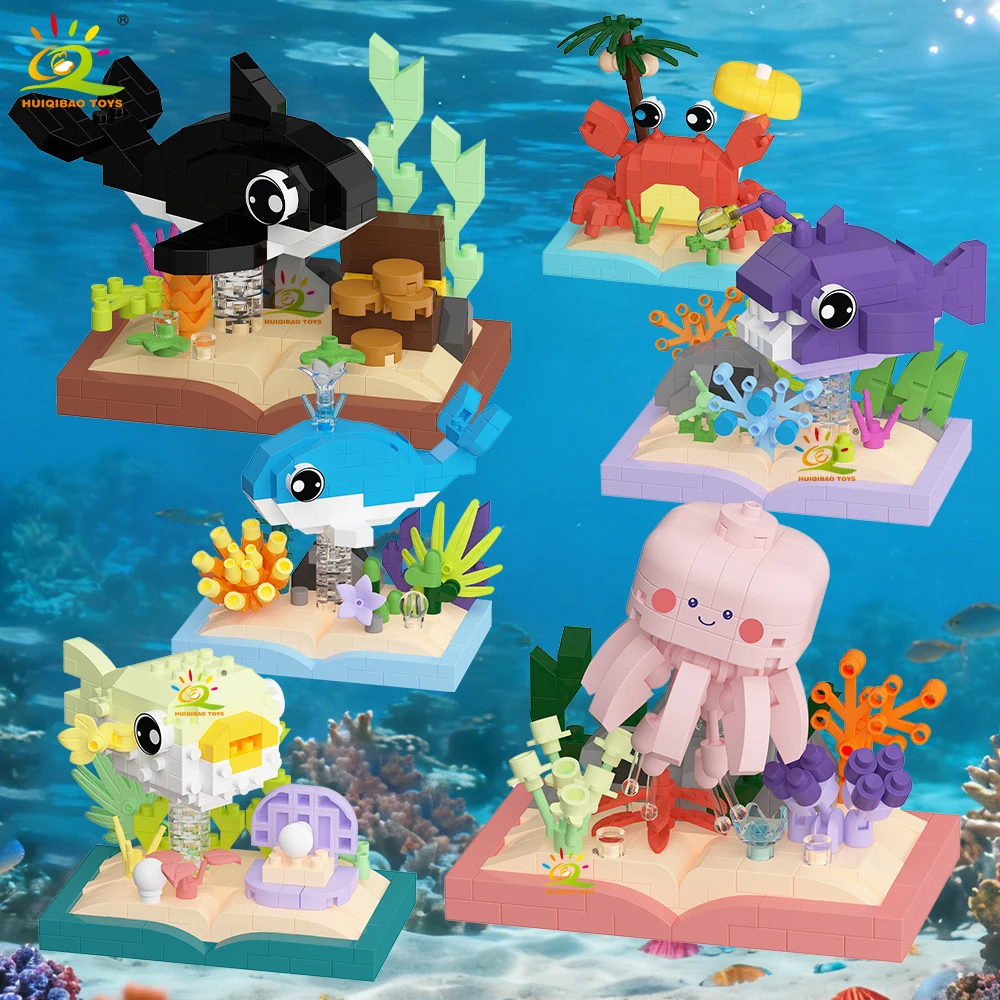 HUIQIBAO MOC Ocean Series Micro Building Block Orcas Lantern fish Blue Whales Mini Brick set Toy for Children Desk Decoration