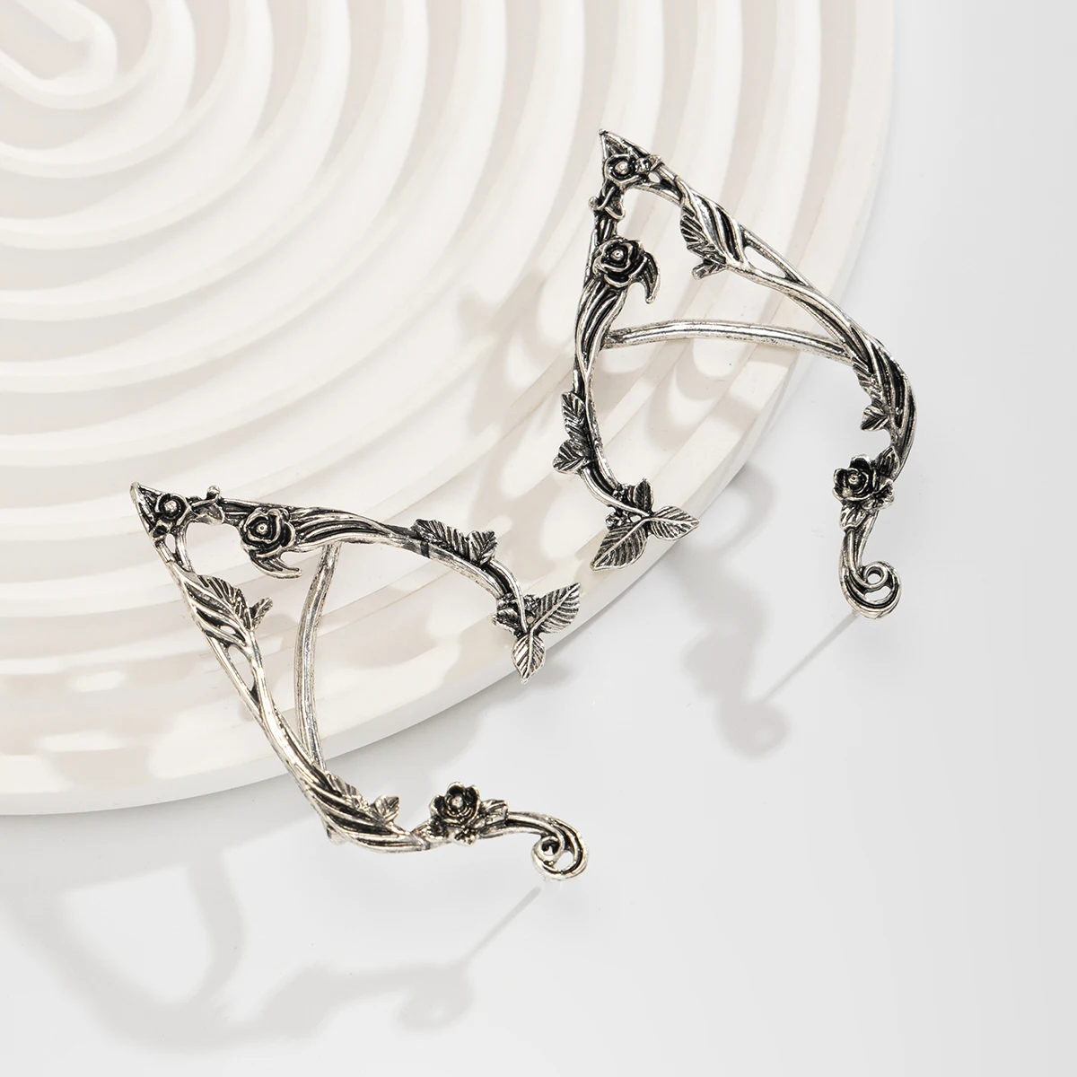 Ingemark 1Pair Goth Fairy Elf Ear Cuff Earrings Women Fashion Statement Vintage Piercing Clip Earring Halloween Party Jewelry
