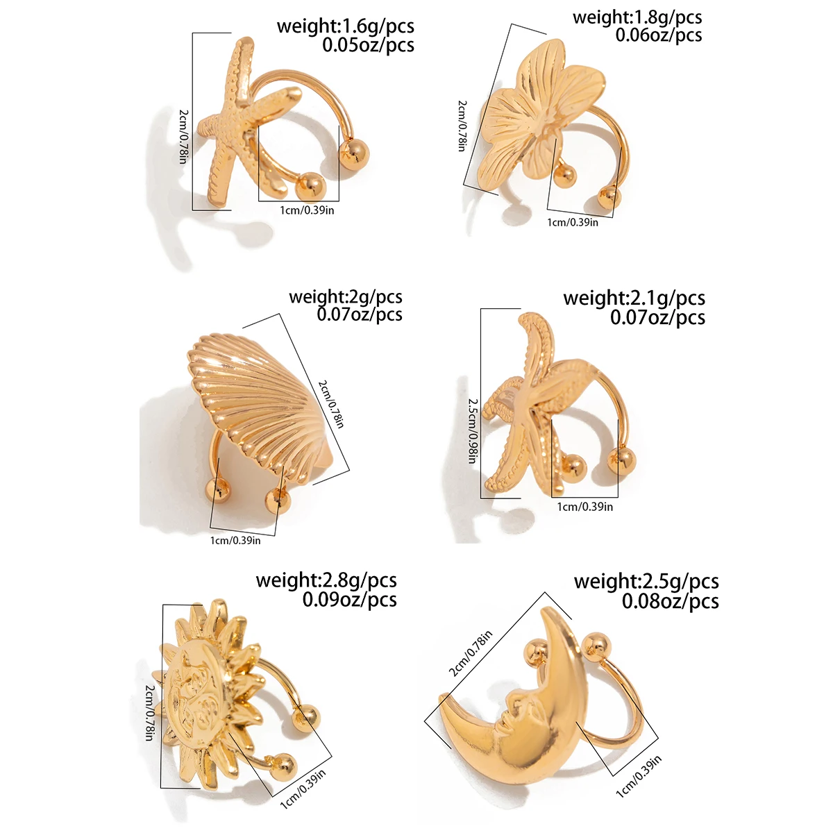 Be the first to review “Ingemark 1PC Simple Metal Starfish Flower Ear Cuff for Women Non Piercing Fake Cartilage Moon Scallop Clip Earrings Jewelry Gift” Cancel reply
