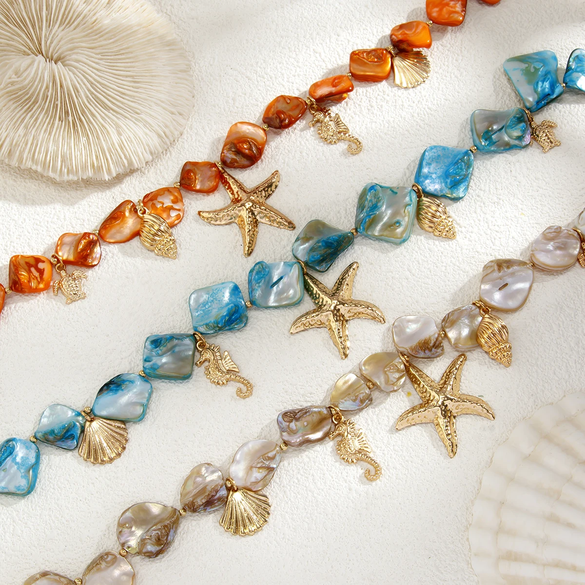 Ingemark Bohemian Irregular Chain Necklace for Women Summer Beach Vacation Starfish Conch Pendant Choker Necklace Y2K Jewelry