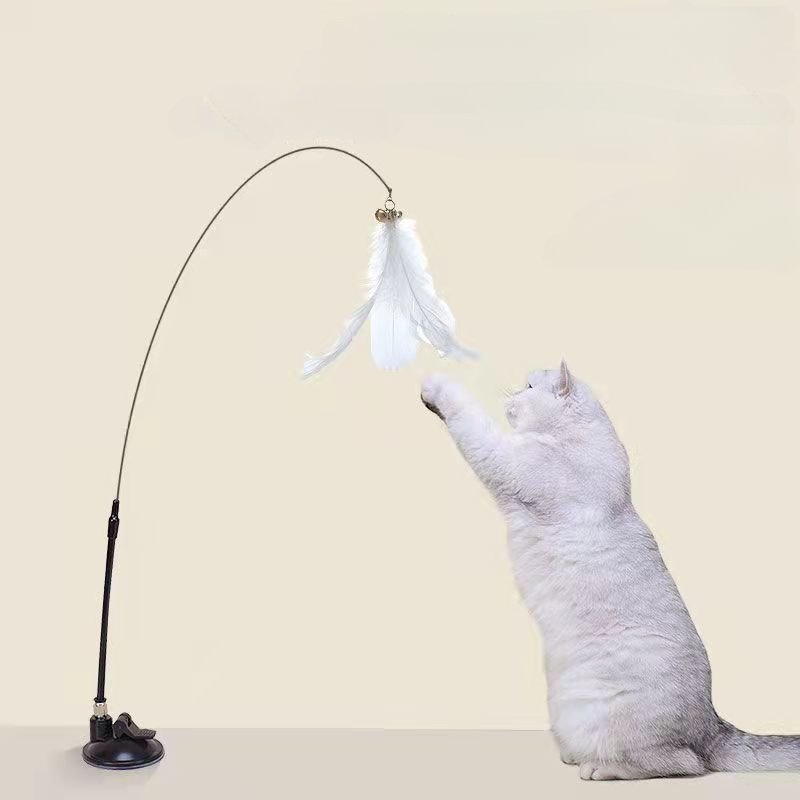 Interactive Cat Toy Handfree Cat Stick Playing Kitten Playing Teaser Wand Toy Suction Cup Bird/Feather Cat Wand Pet Supplies