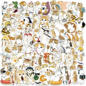 64PCS Cute Cats Animal Cartoon Stickers Funny Decals DIY Phone Suitcase Scrapbook Stationary Phone Laptop Sticker Kids Toy