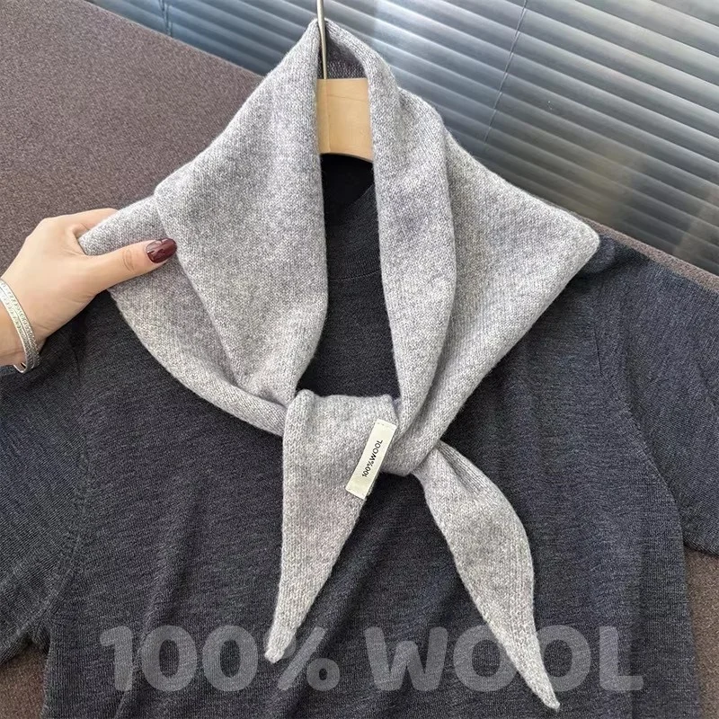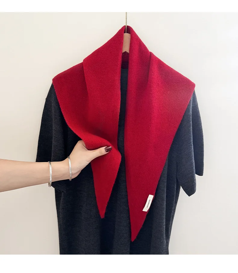 Knitted Scarf Women 100% Wool Winter Warm Scarves Bright Solid Color Design Thickened Shawl Soft Triangle Pashmina Neck 2025 NEW