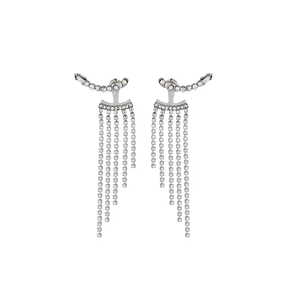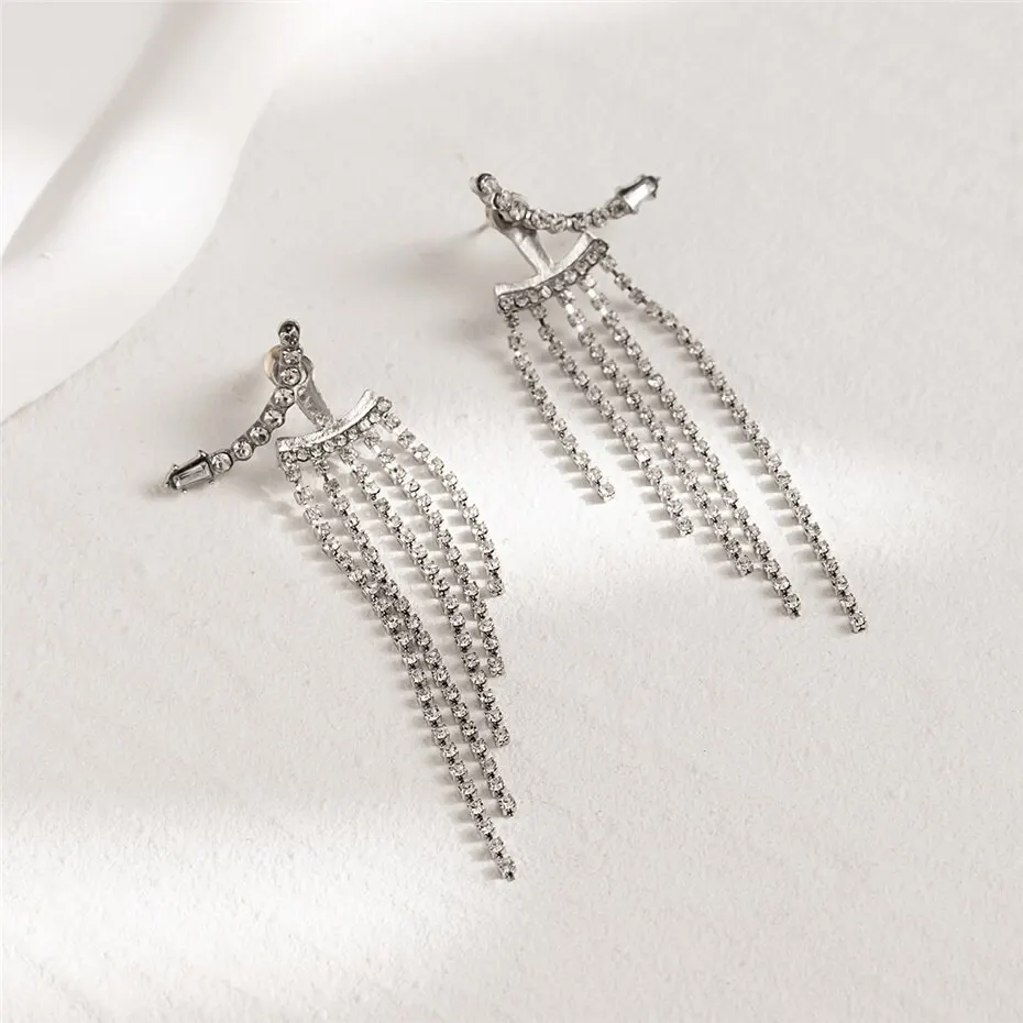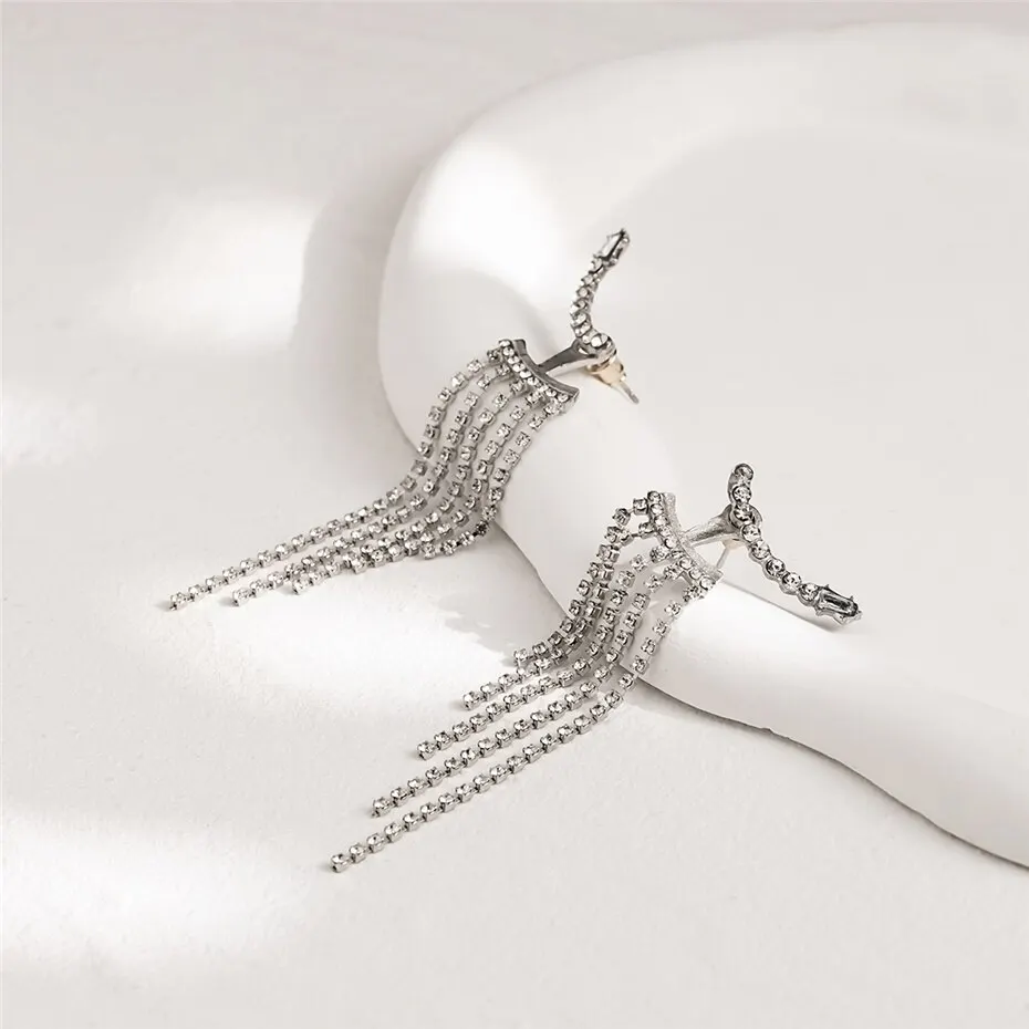 Korean Full Rhinestone Long Tassel Drop Earrings for Women Exquisite Luxury Zircon Crystal Earrings Female Jewelry Wholesale