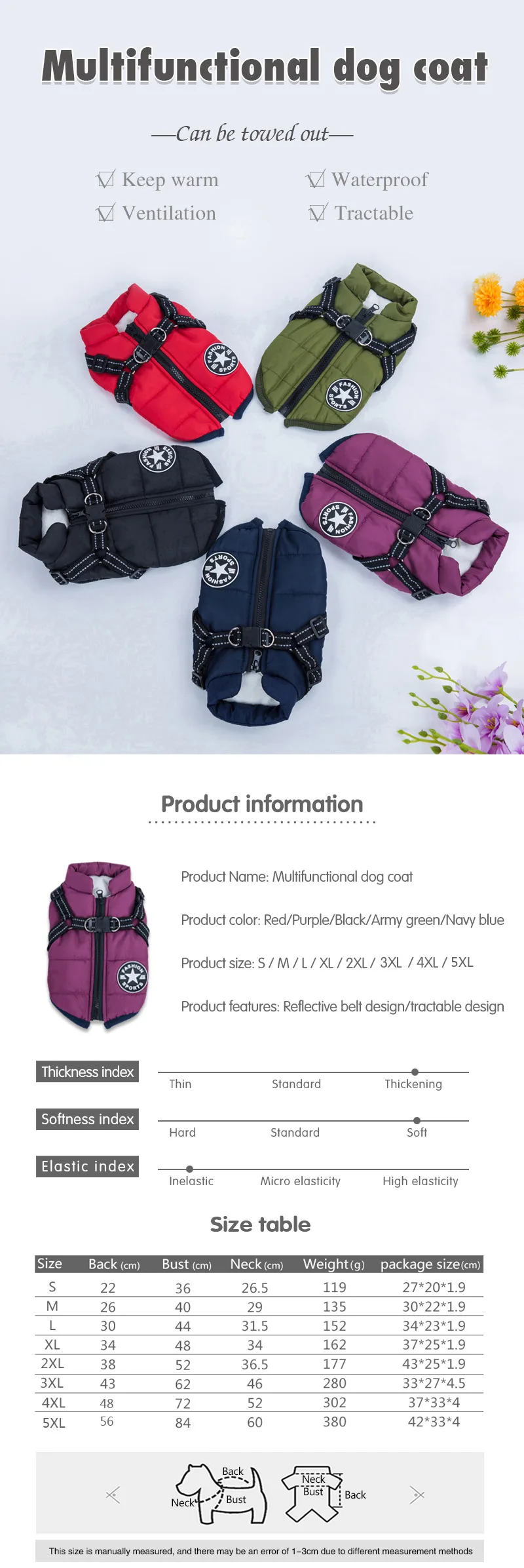 Large Pet Dog Jacket With Harness Winter Warm Dog Clothes For Labrador Waterproof Big Dog Coat Chihuahua French Bulldog Outfits