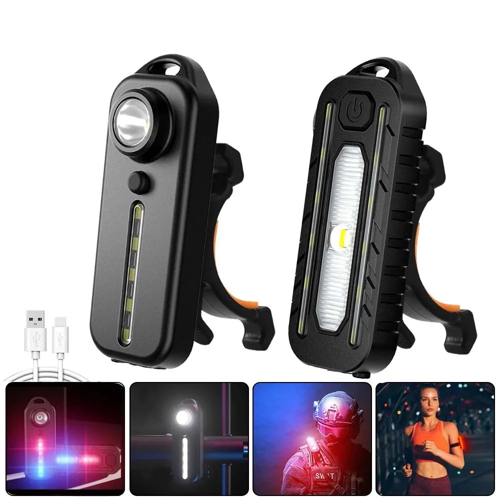 LED Red Blue Shoulder Police Light with Clip USB Charging Flashing Warning Safety Flashlight Torch Bike Warn LANTERN Light