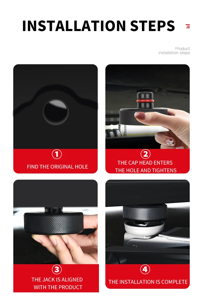 A Must-Have Tesla Accessories – Insert the jack pad into your tesla jack tip hole. Then align the jack directly under it;