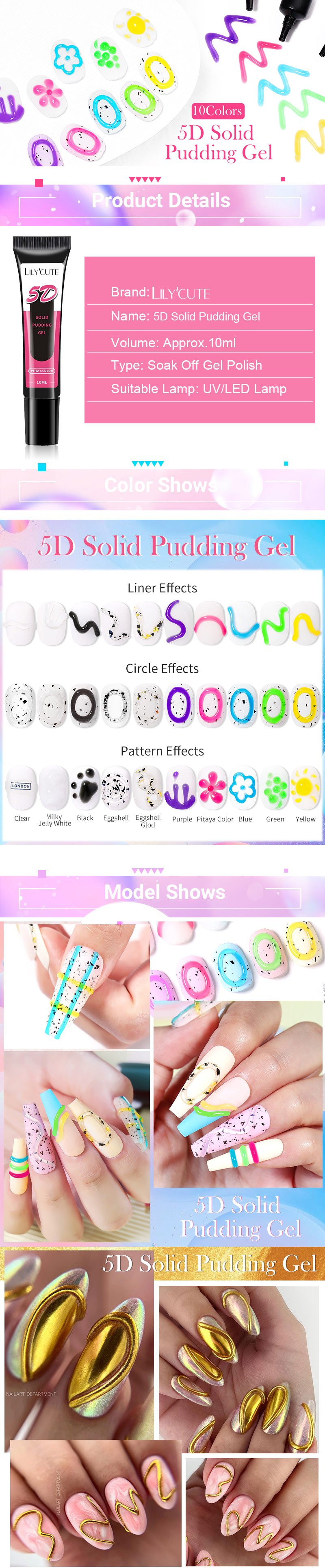 LILYCUTE 10ml 5D Solid Pudding Gel Nail Polish Tube Emboss Painting Gel Polish Translucent Jelly Gel Varnish DIY Nail Art Design