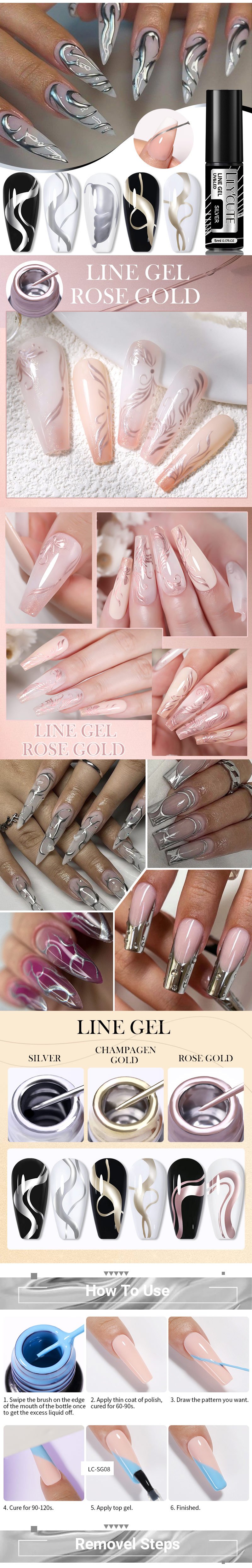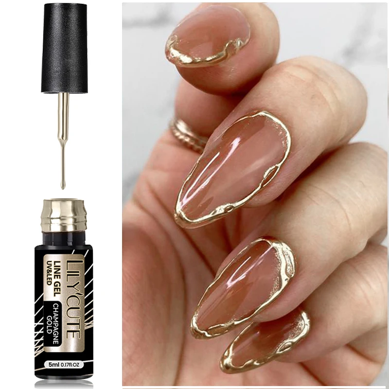 LILYCUTE 5ML Metallic Painting Liner Gel Nail Polish Super Bright Gold Silver Mirror Drawing Gel Semi Permanent Line French Nail