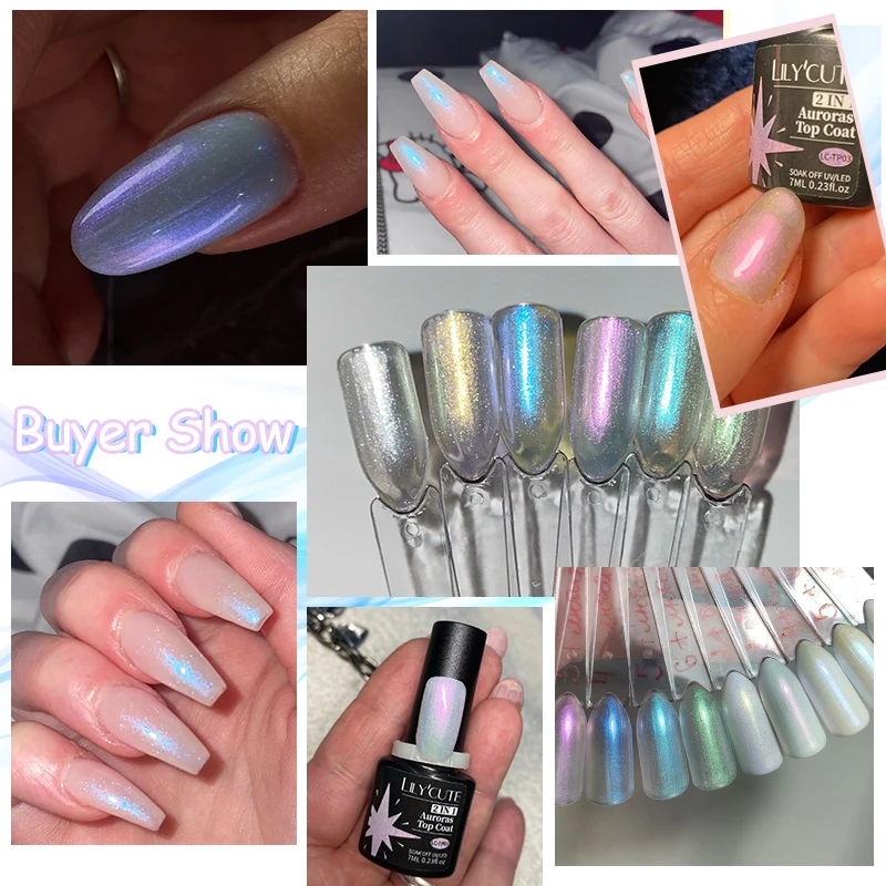 LILYCUTE 7ML Aurora Glitter Nail Gel Polish Blue Purple Sparking Gel Nail Art Semi Permanent UV Gel 2 In 1 Function Top Coat