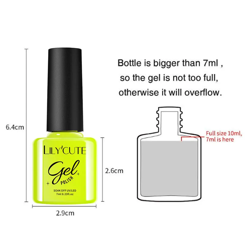 LILYCUTE 7ml Fluorescent Neon Gel Nail Polish Glitter Vernis Semi Permanent Soak Off Nail Art UV LED Base Top Coat For Manicure