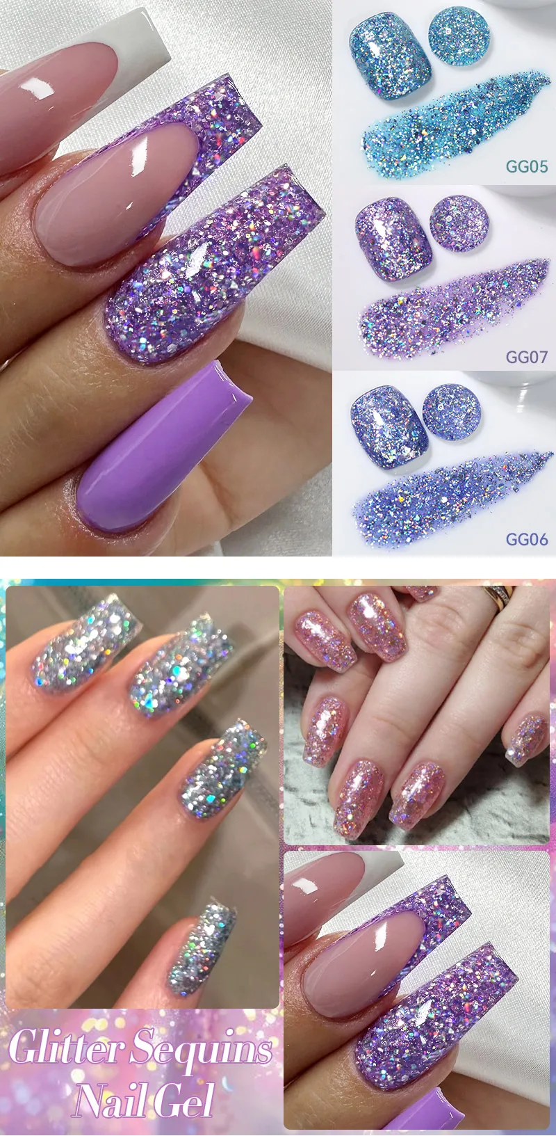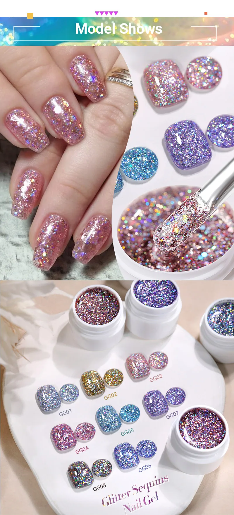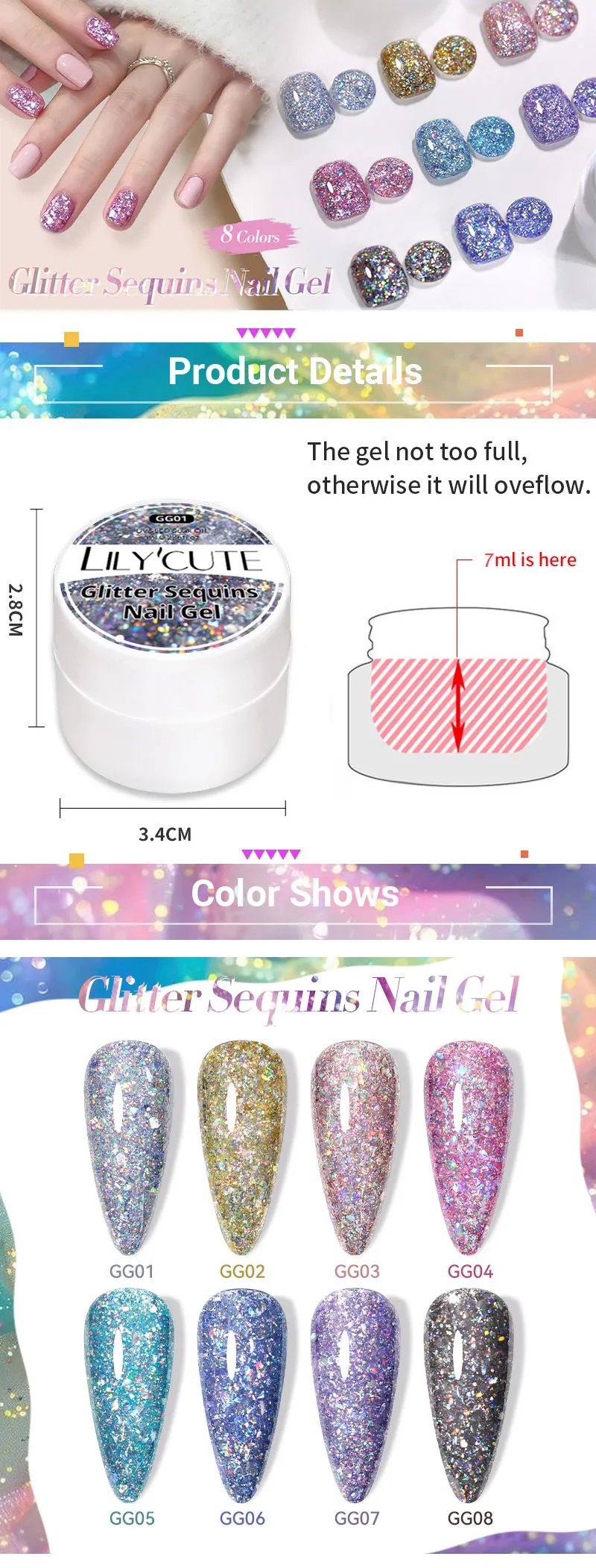 1 Jar 7ml LILYCUTEÂ Glitter Sequins Nail Gel
