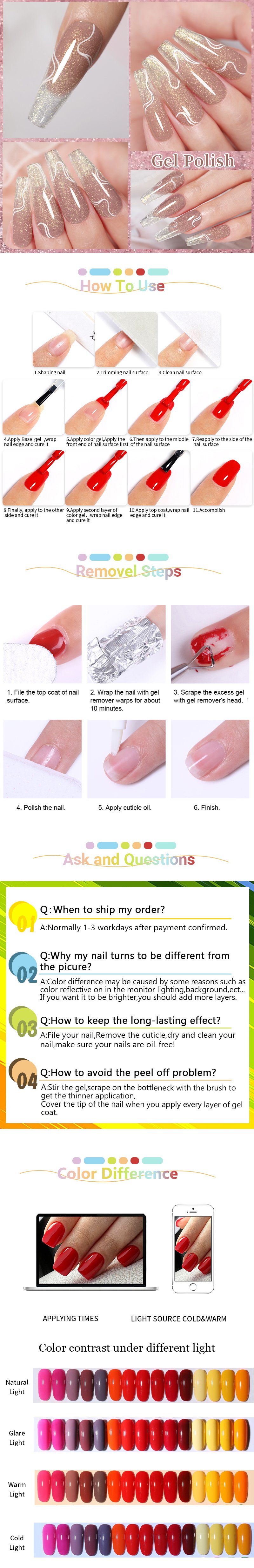 Suitable to apply on UV gel nails , acrylic nails and natural nails etc.