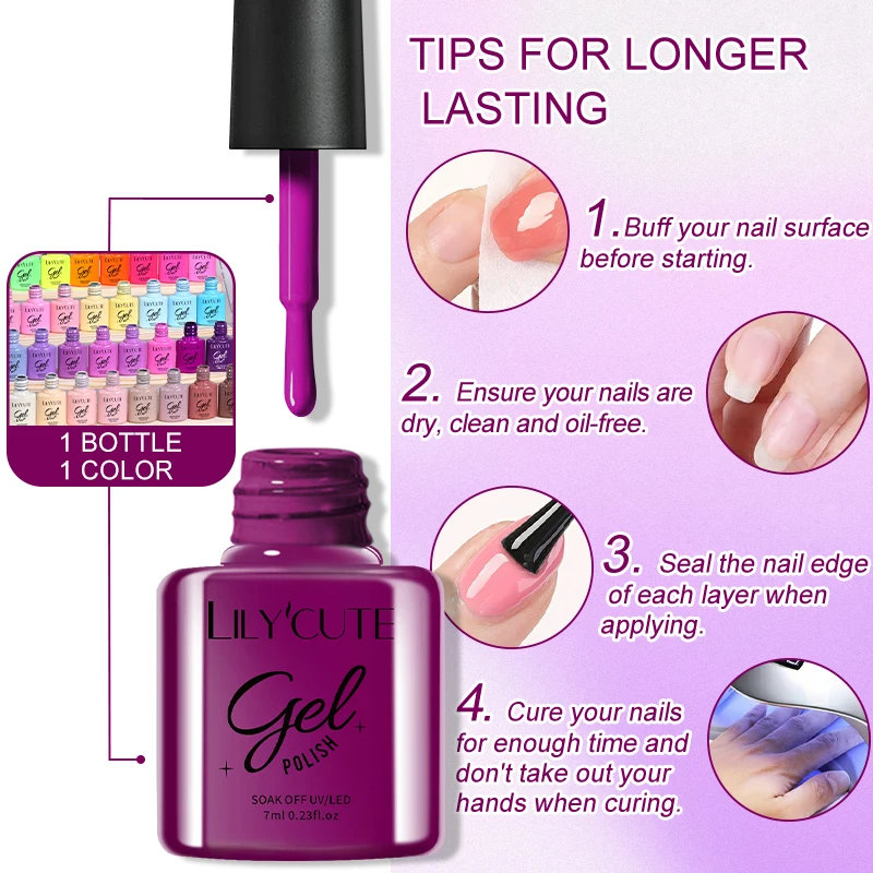 LILYCUTE 7ml Purple Nail Gel Polish Nail Supplies Vernis Semi Permanent Nail Art Manicure Soak Off LED UV Gel Nail Varnishes