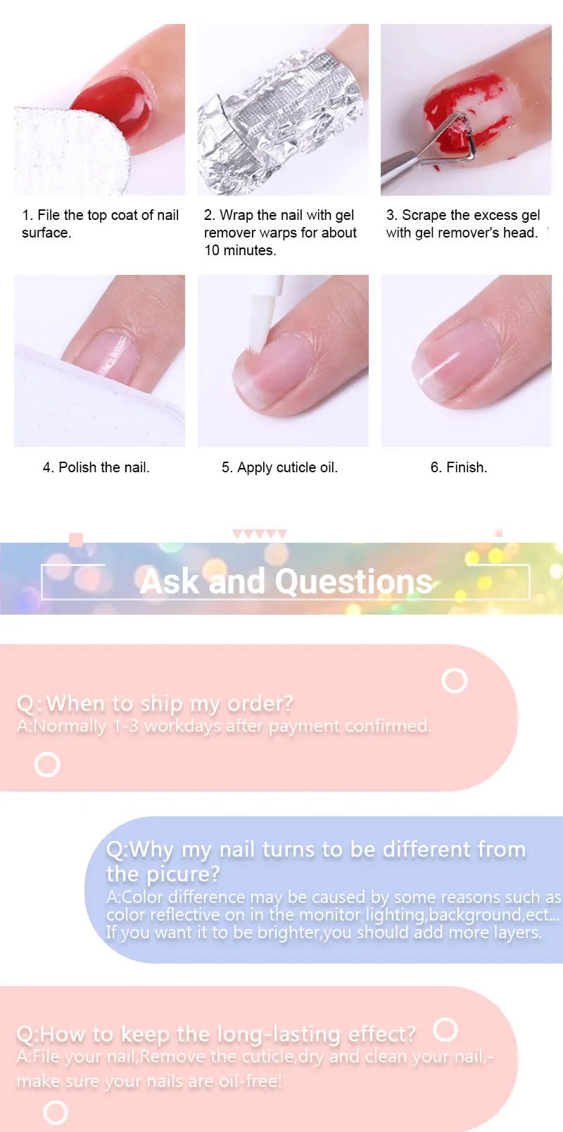 Long lasting for at least 15-21days, fantastic and super bright nails for you.