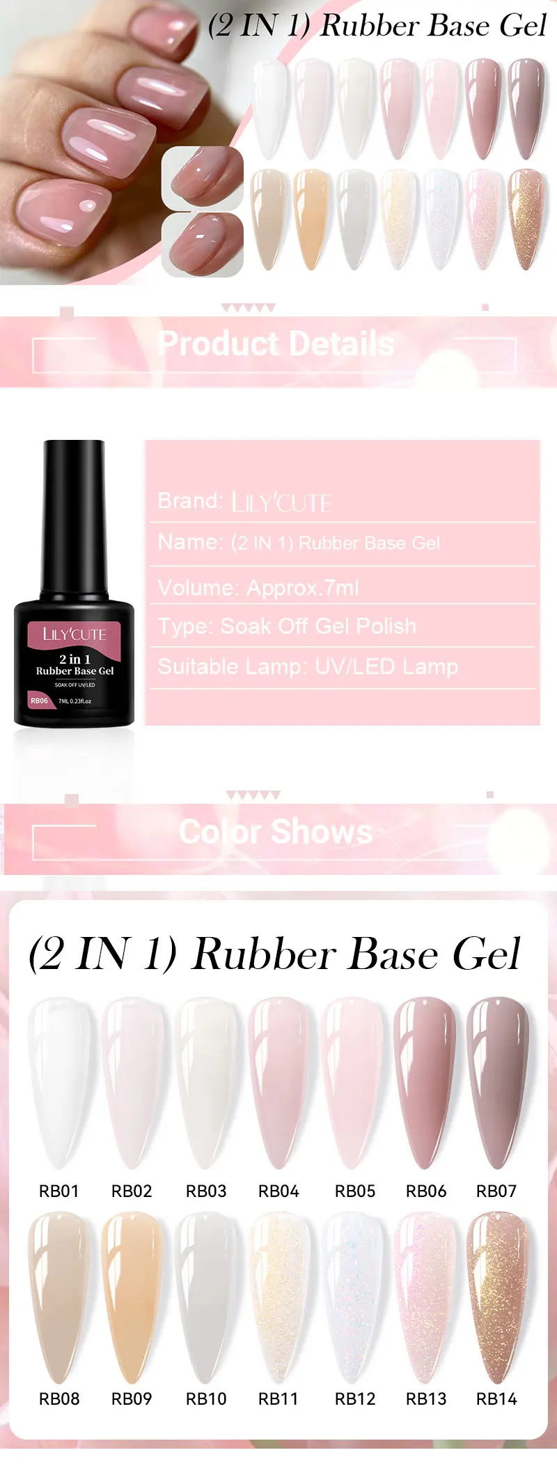 LILYCUTE Nude Rubber Base Gel Milky Pink Color Semi Permant Soak Off UV LED Self-leveling Gel Varnish Great Coverage For Nails