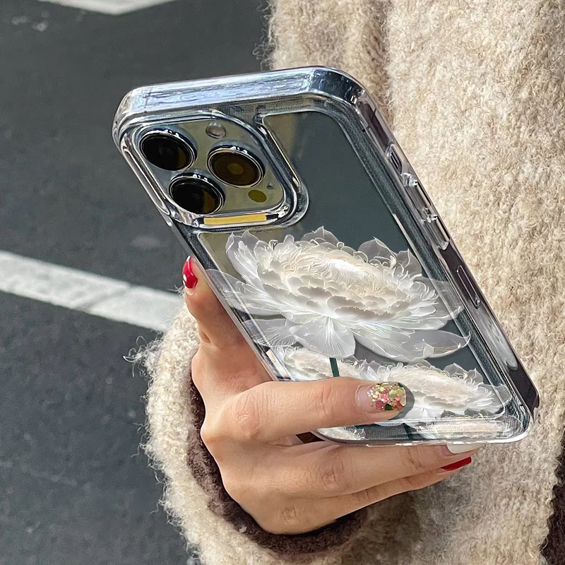 Lotus Flower Transparent Phone Case For iPhone 16 Pro Max Case iPhone 13 17 15 11 12 14 Pro Max XR 8 7 Plus SE Shockproof Cover