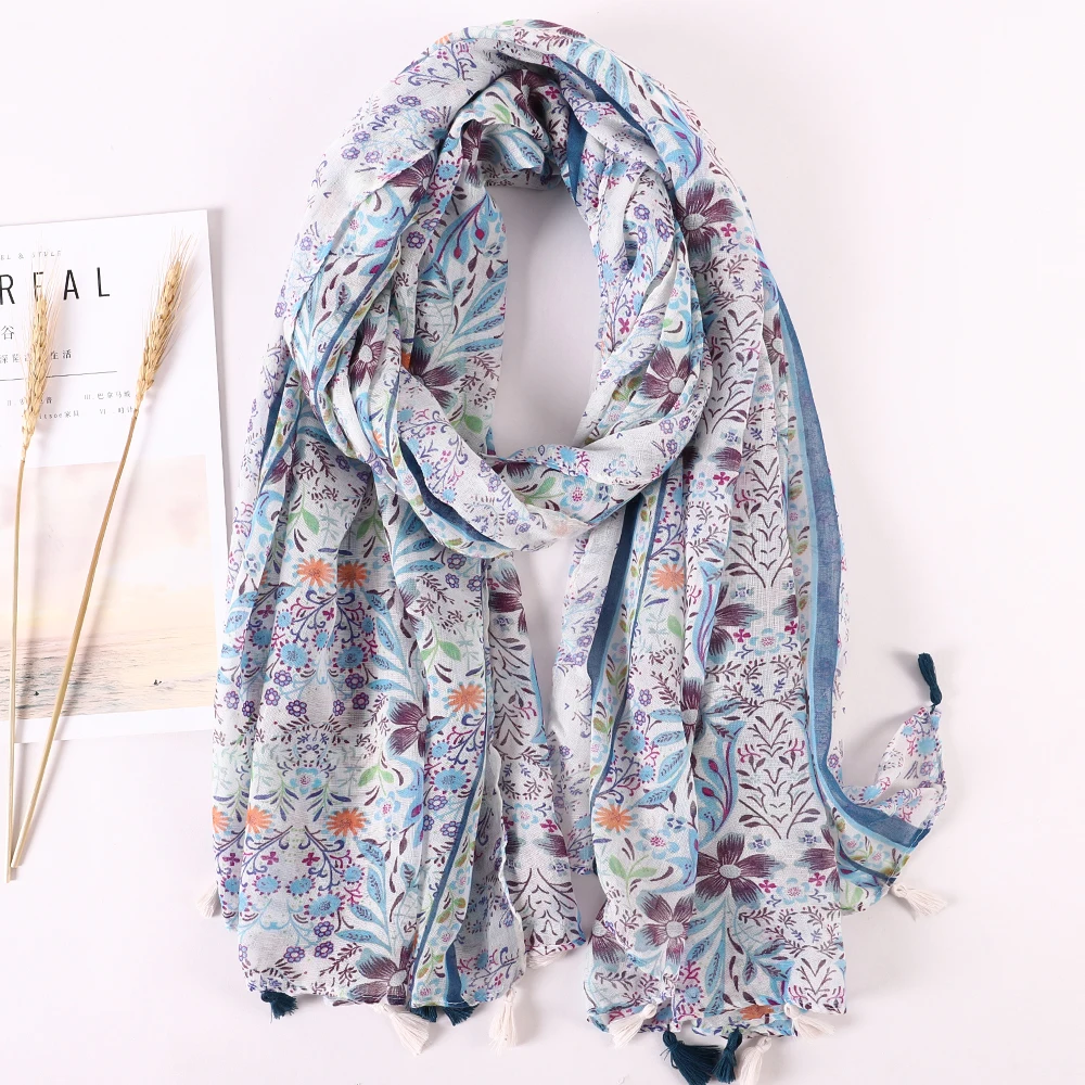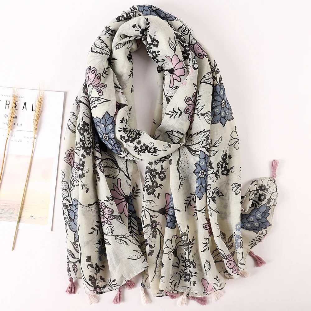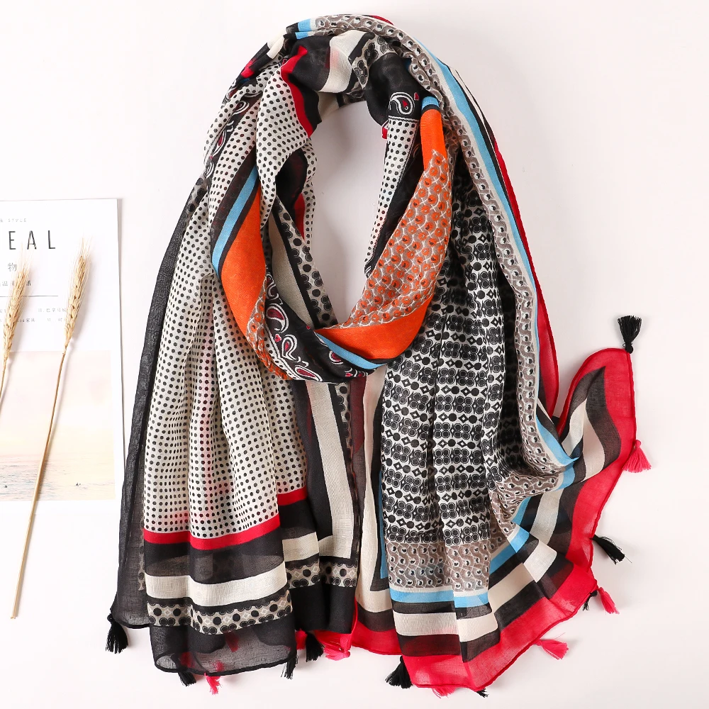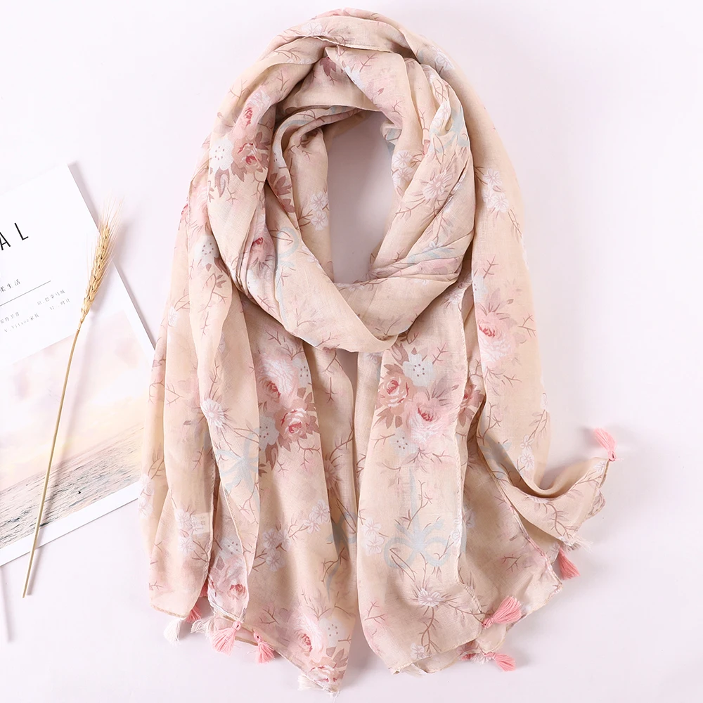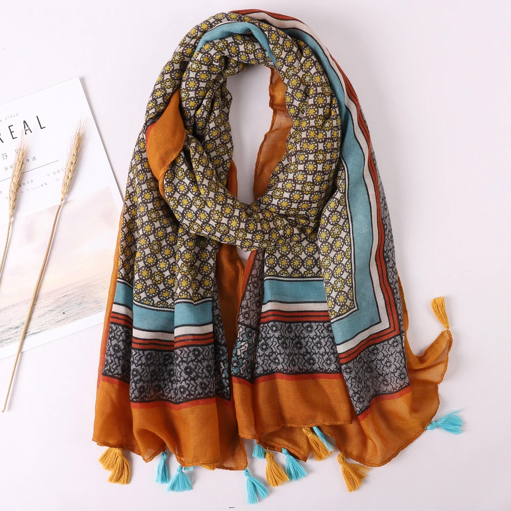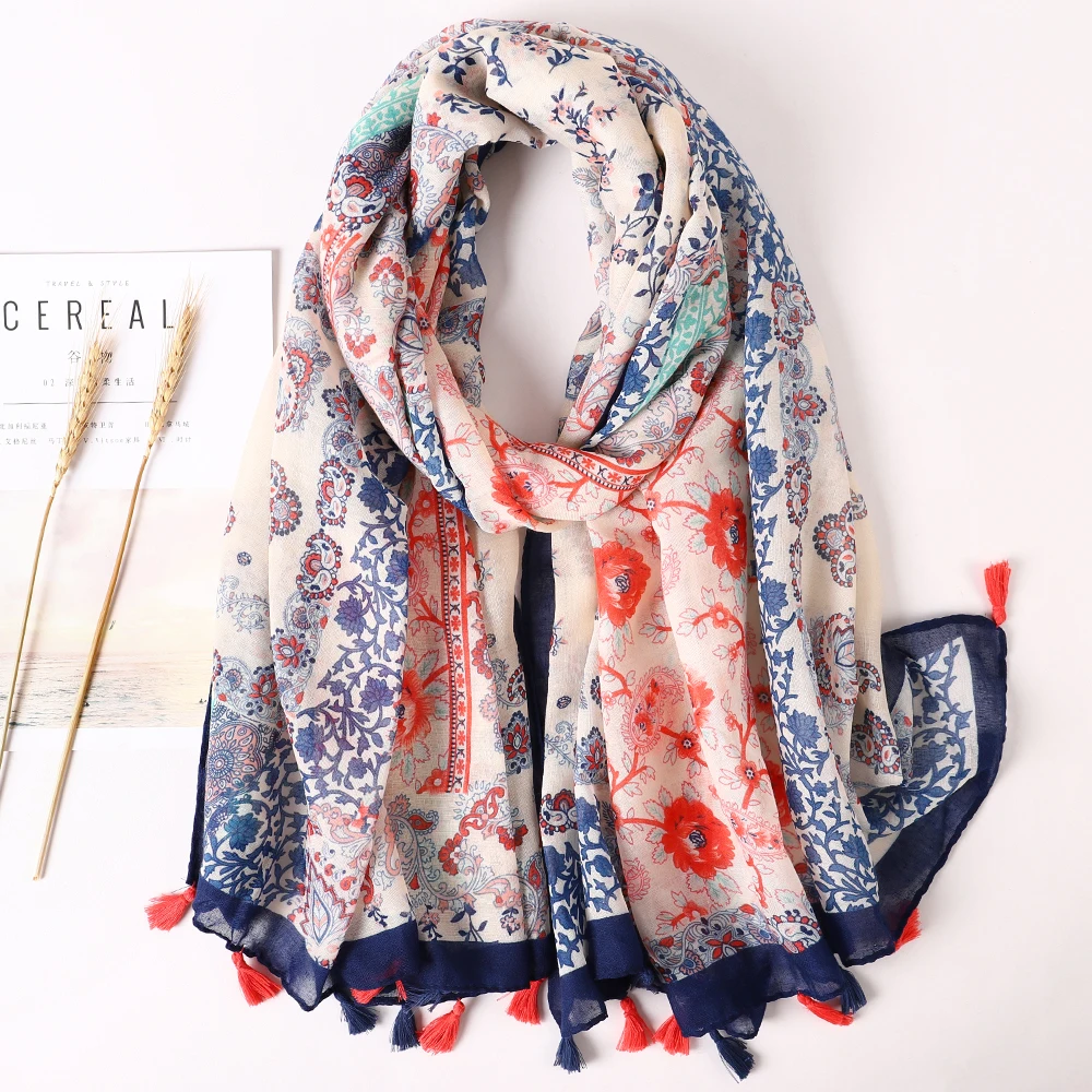 Luxury Brand 2021 Cotton Scarf Women Large Shawls Pashmina Muslim Hijab Foulard Design Print Lady Beach Stole Head Scarves Pareo