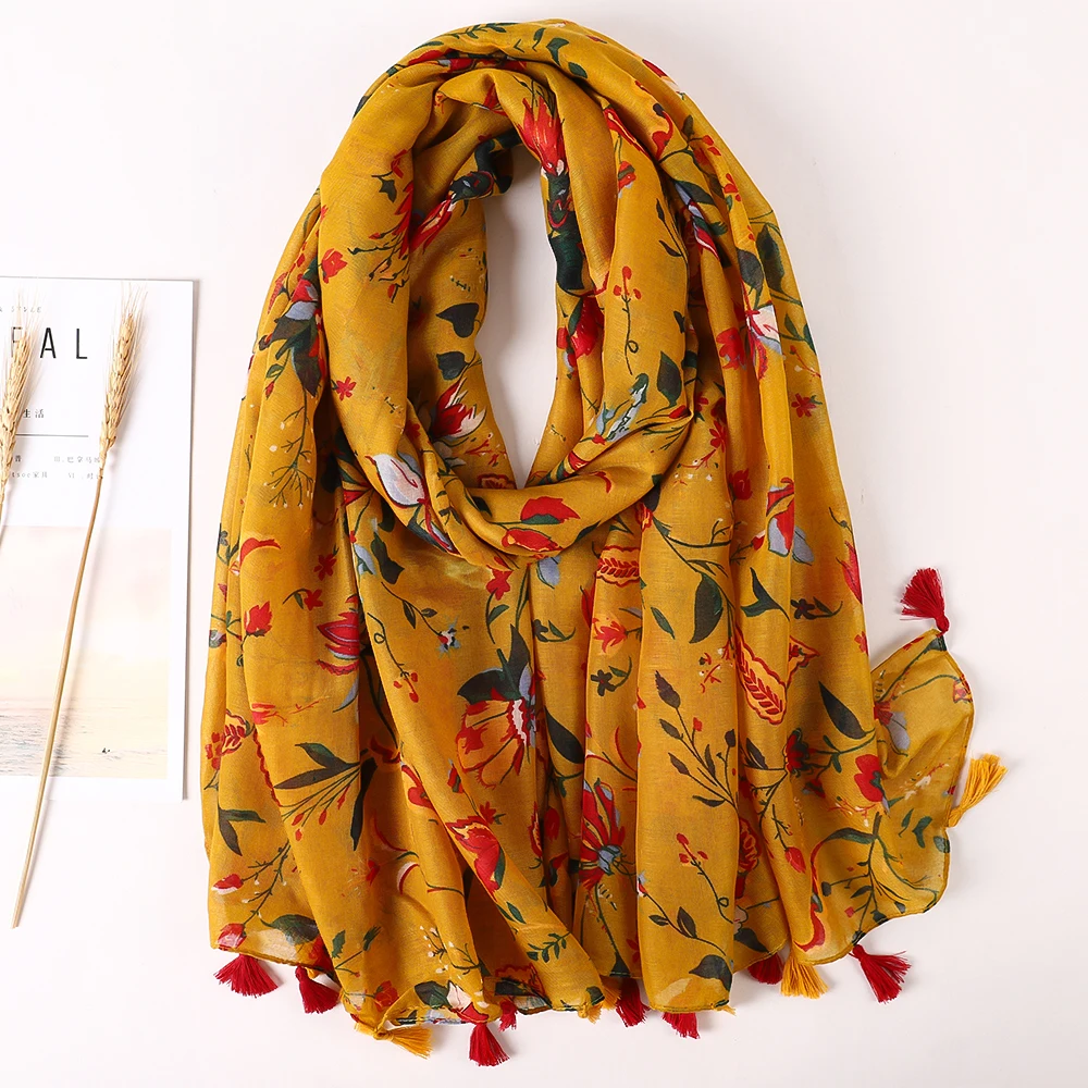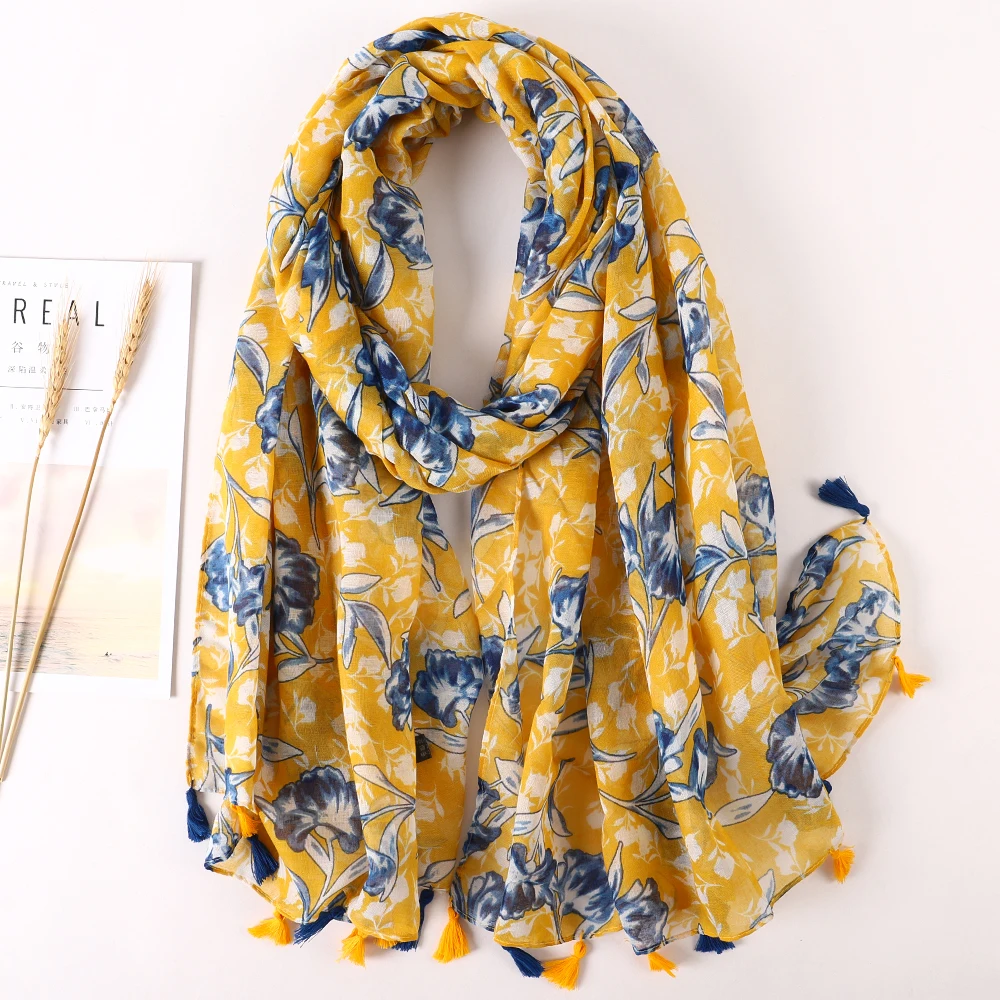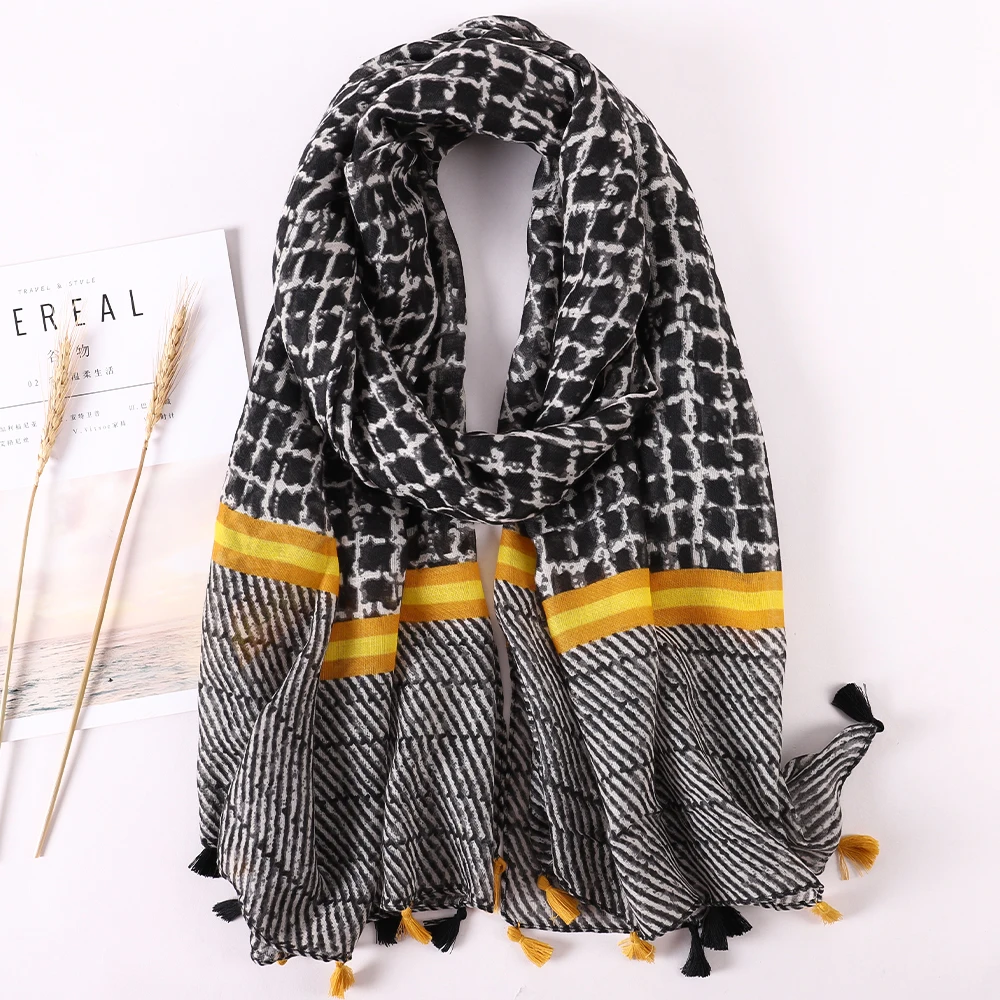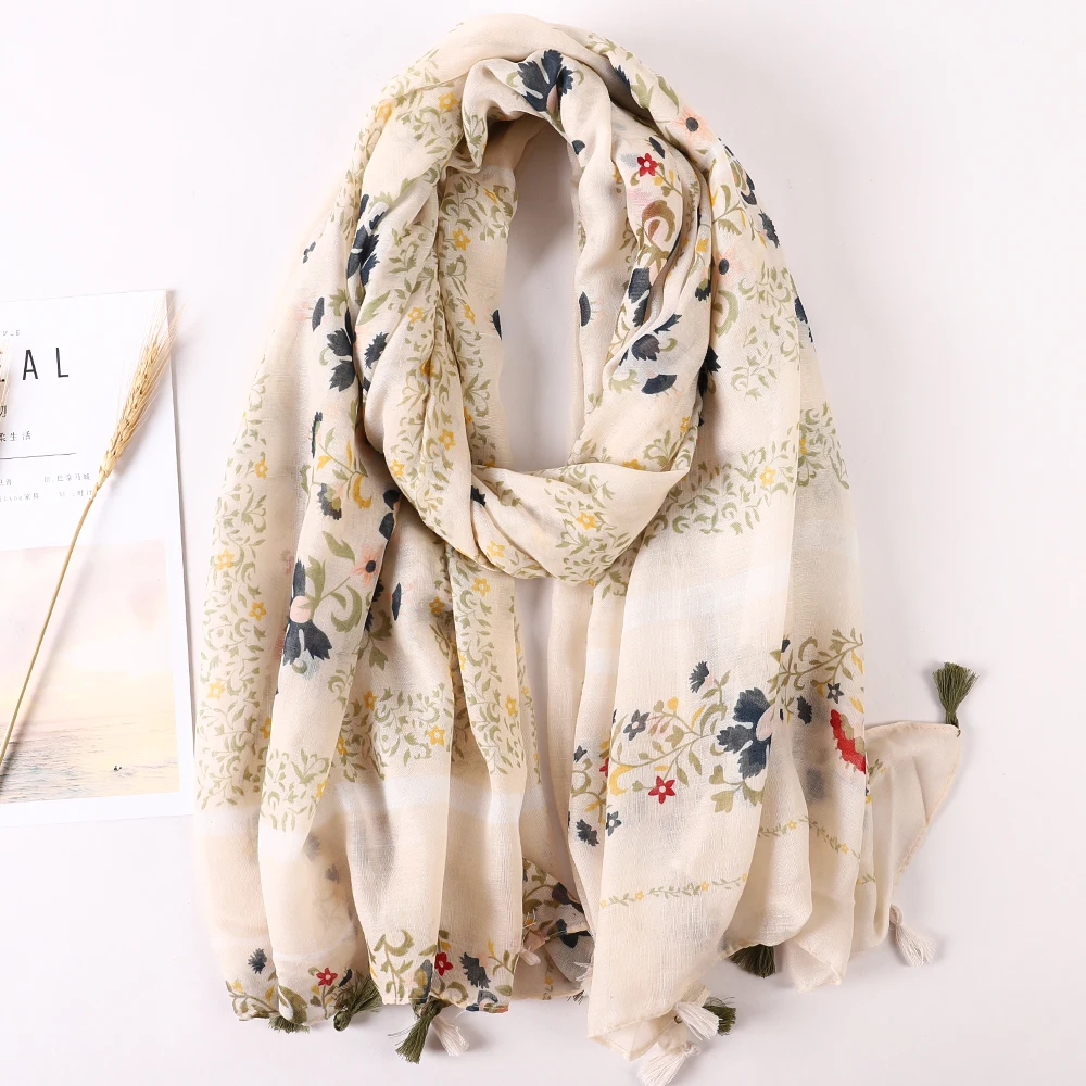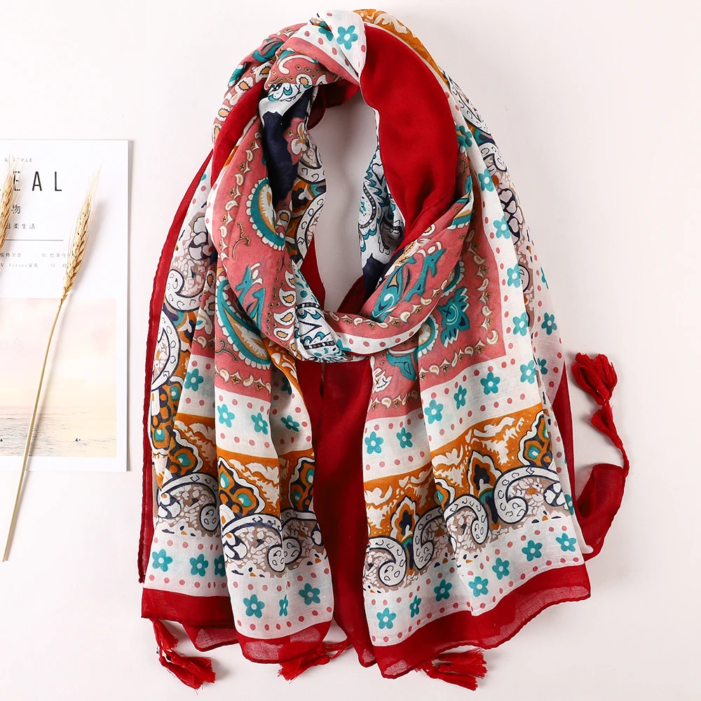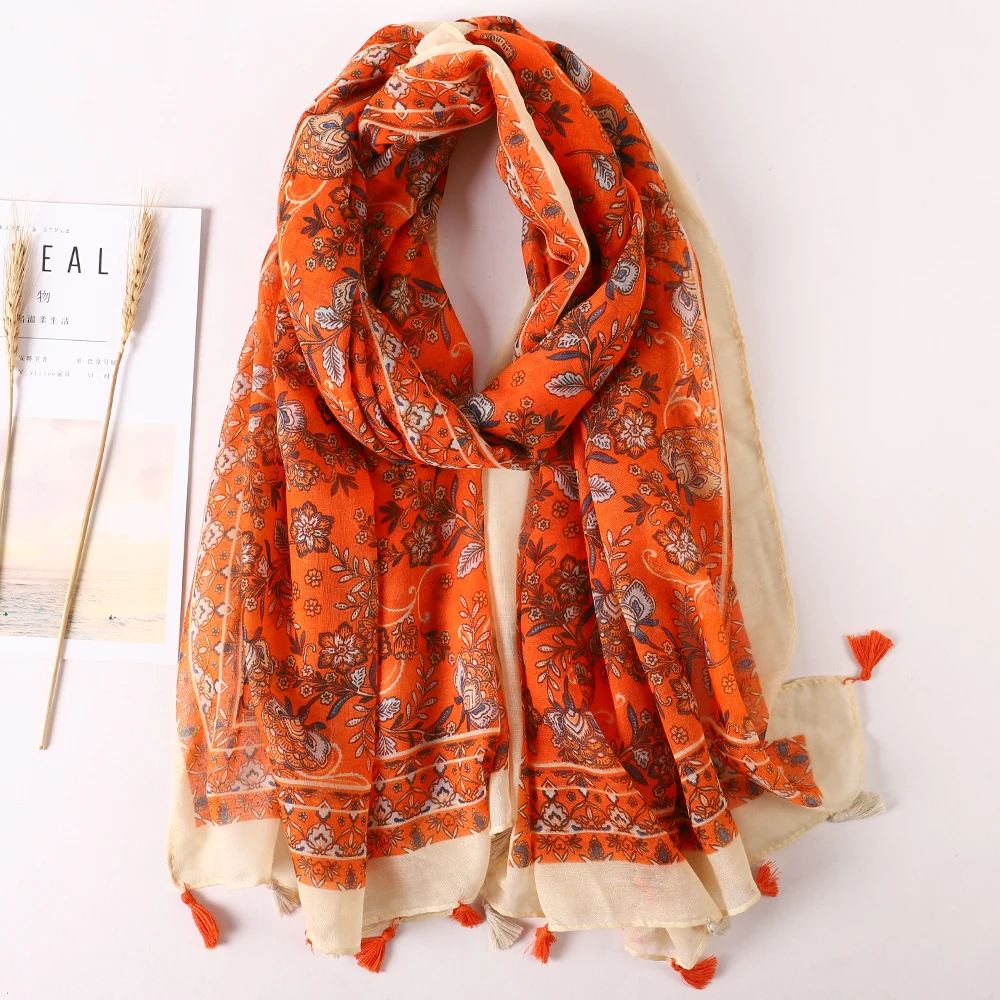 Luxury Brand 2021 Cotton Scarf Women Large Shawls Pashmina Muslim Hijab Foulard Design Print Lady Beach Stole Head Scarves Pareo