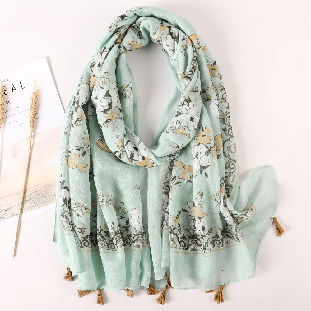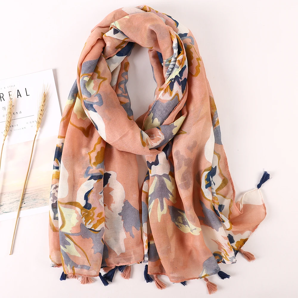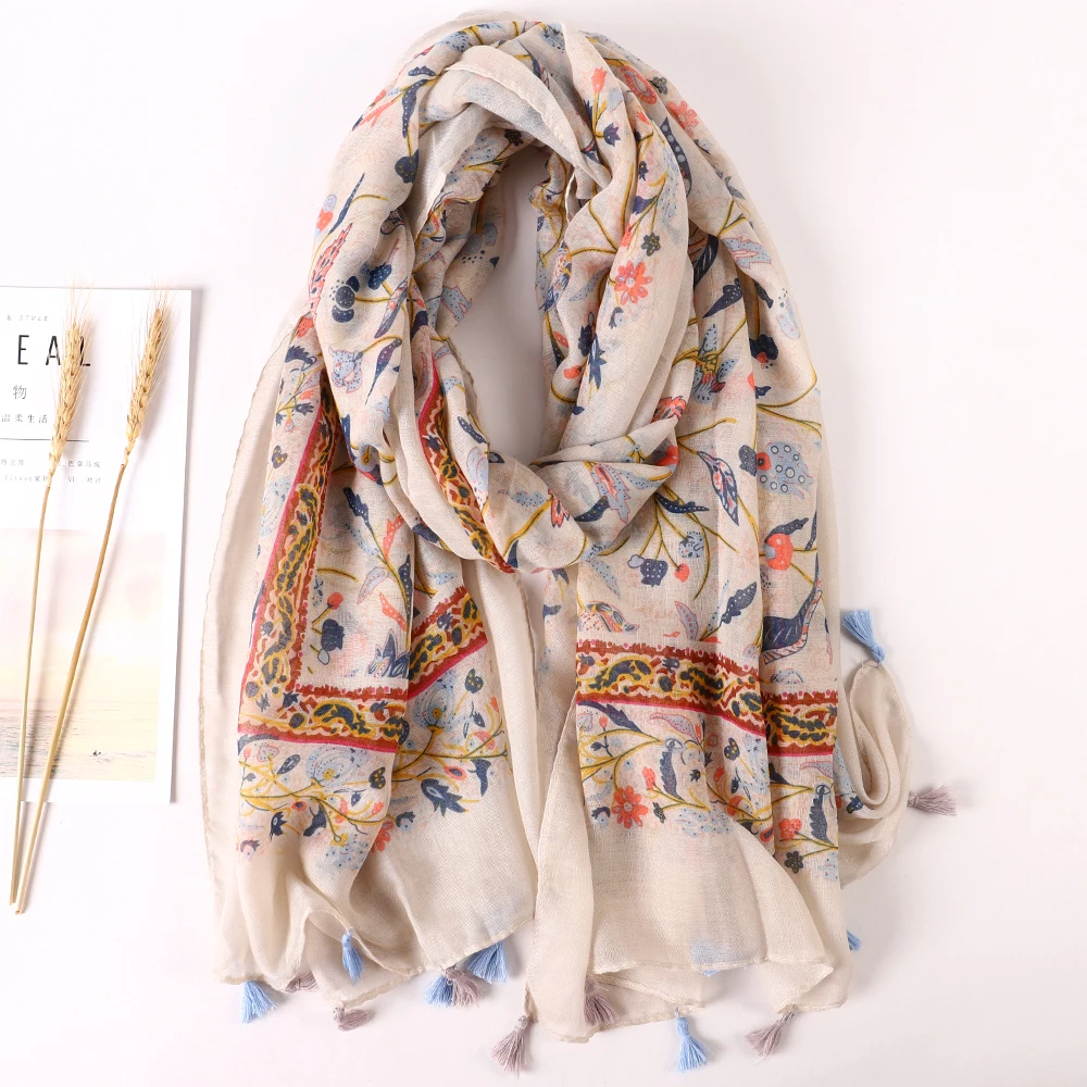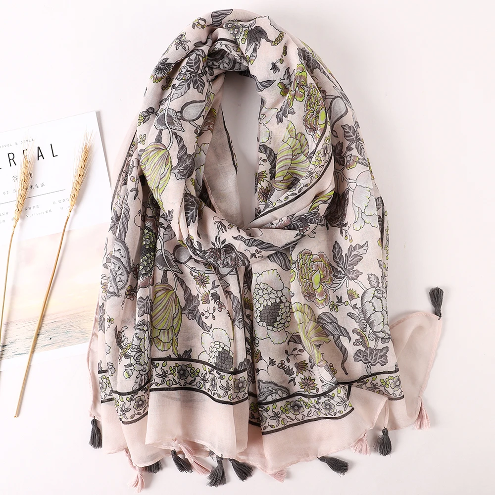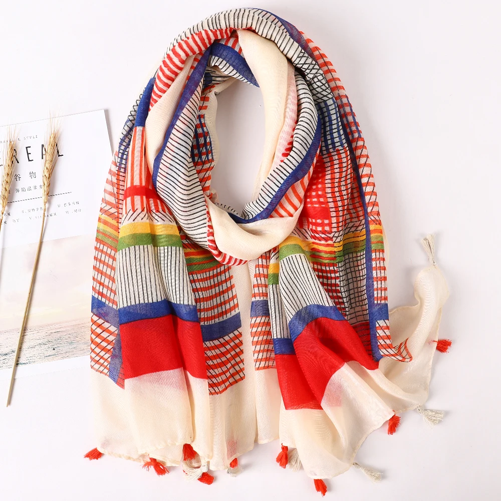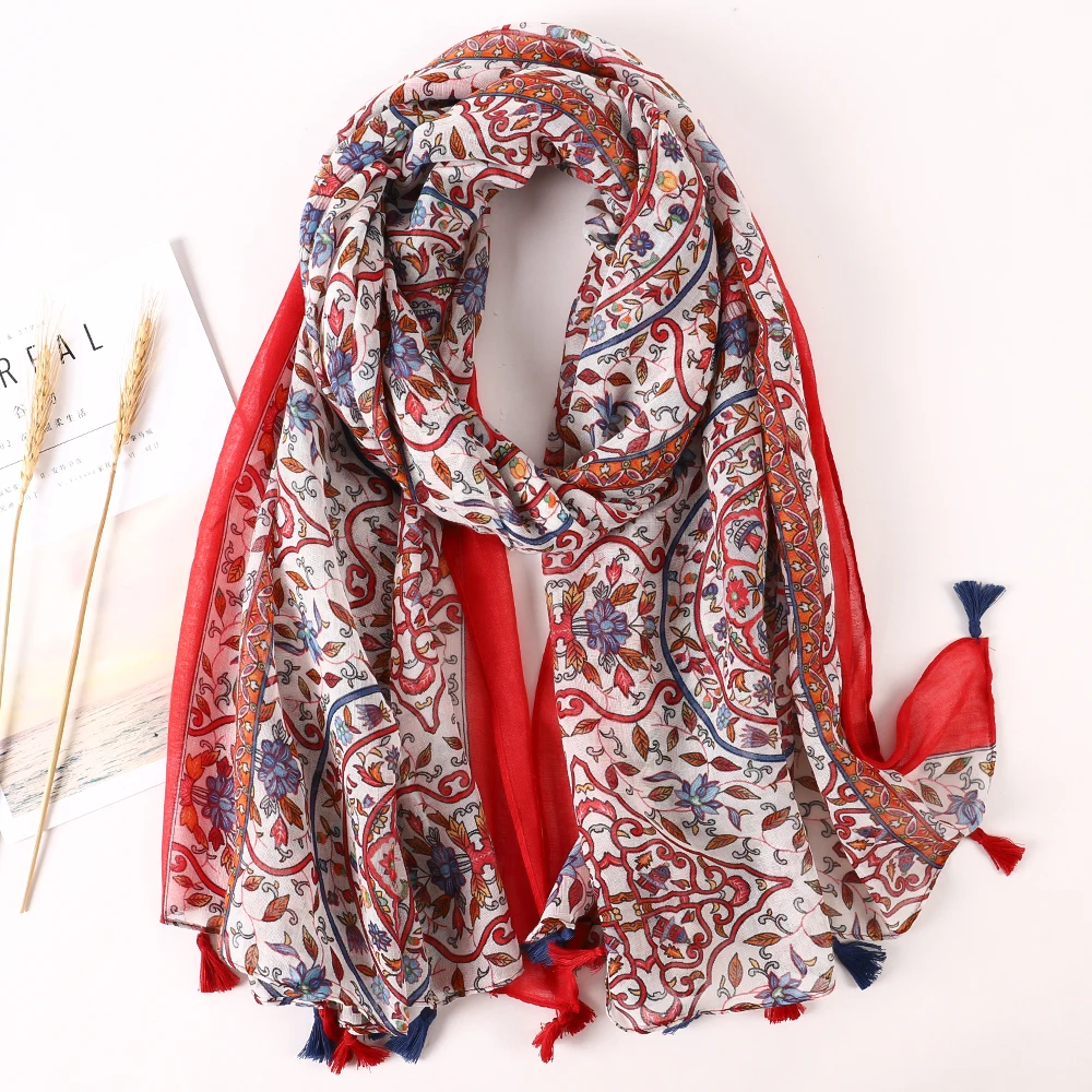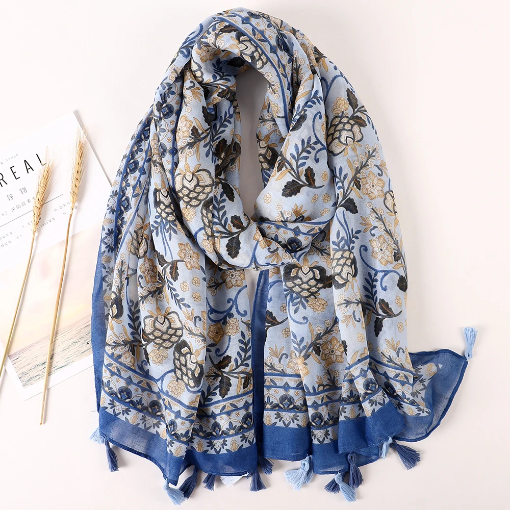 Luxury Brand 2021 Cotton Scarf Women Large Shawls Pashmina Muslim Hijab Foulard Design Print Lady Beach Stole Head Scarves Pareo
