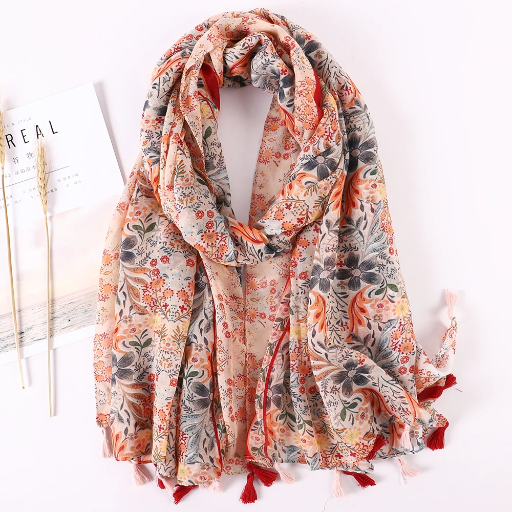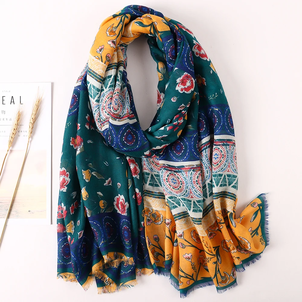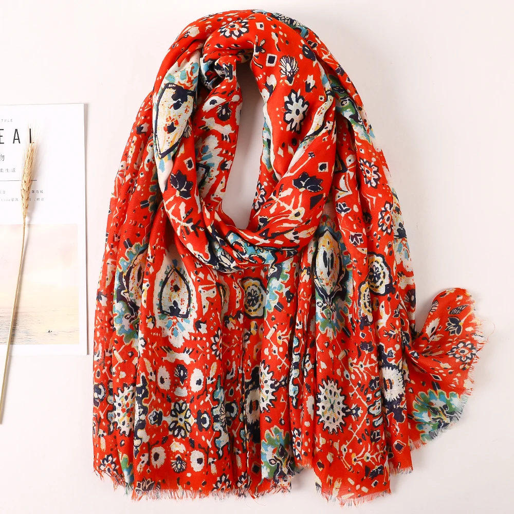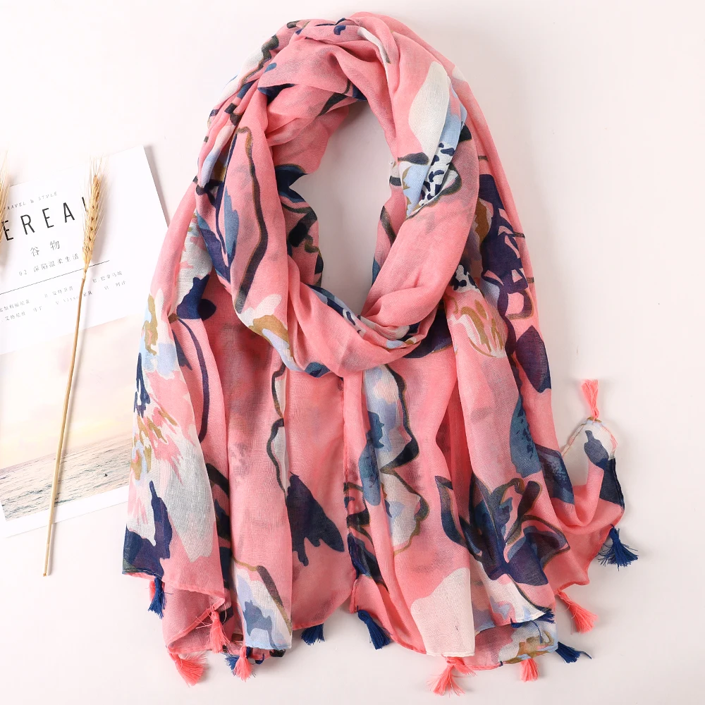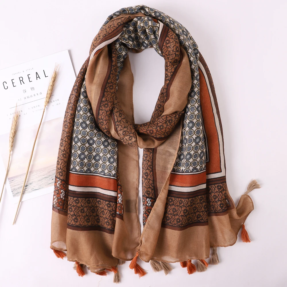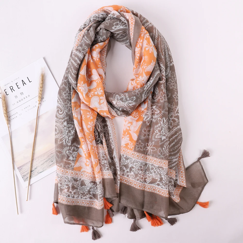 Luxury Brand 2021 Cotton Scarf Women Large Shawls Pashmina Muslim Hijab Foulard Design Print Lady Beach Stole Head Scarves Pareo