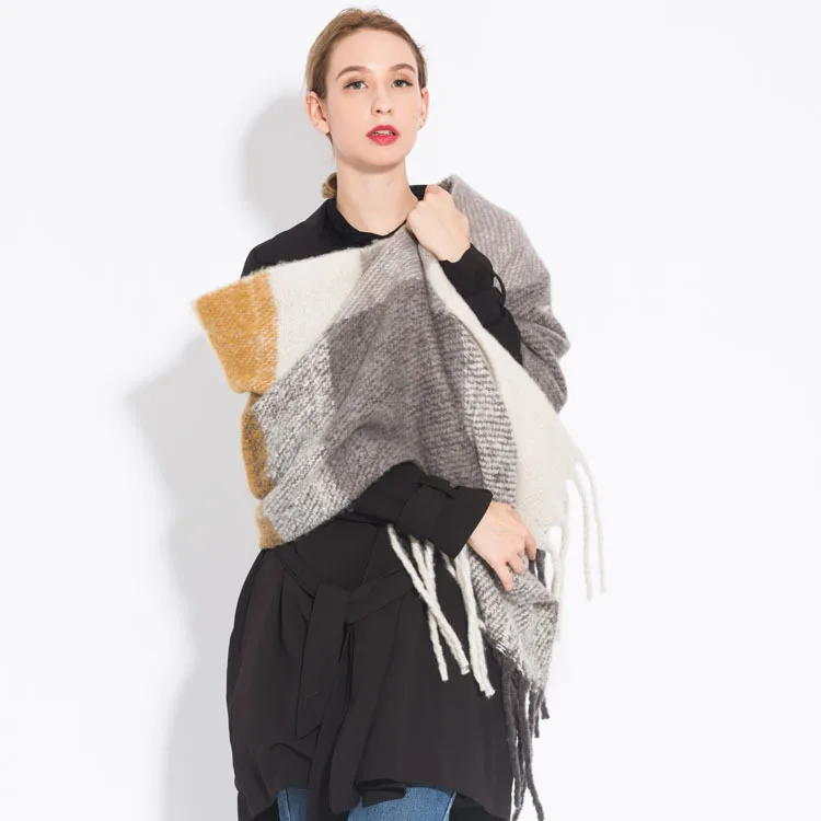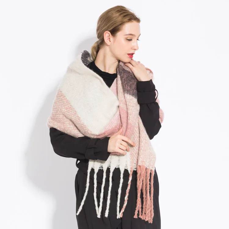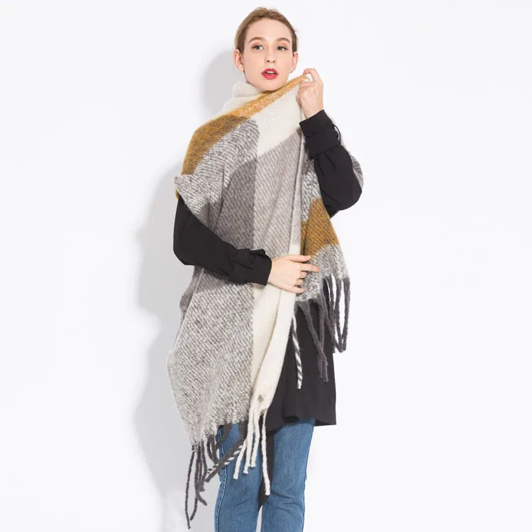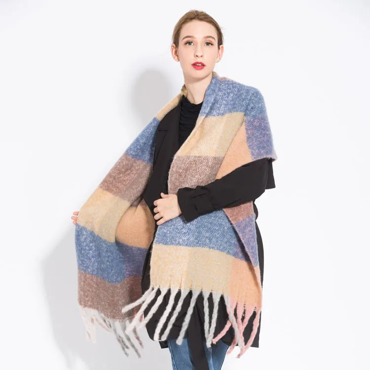 Luxury Brand Cashmere Women Plaid Scarf Winter Warm Shawl Wrap Pashmina Long Tassel Female Foulard Thick Blanket Scarves Pareo