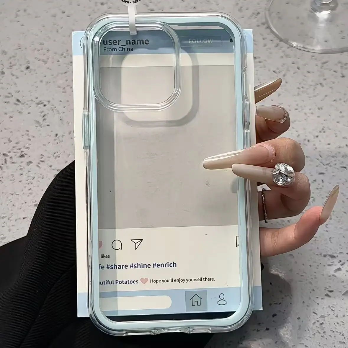 Luxury Candy Color Frame Clear Back Phone Case For iPhone 17 Air 16 15 14 13 12 11 Pro Max Plus Acrylic Shockproof Bumper Cover