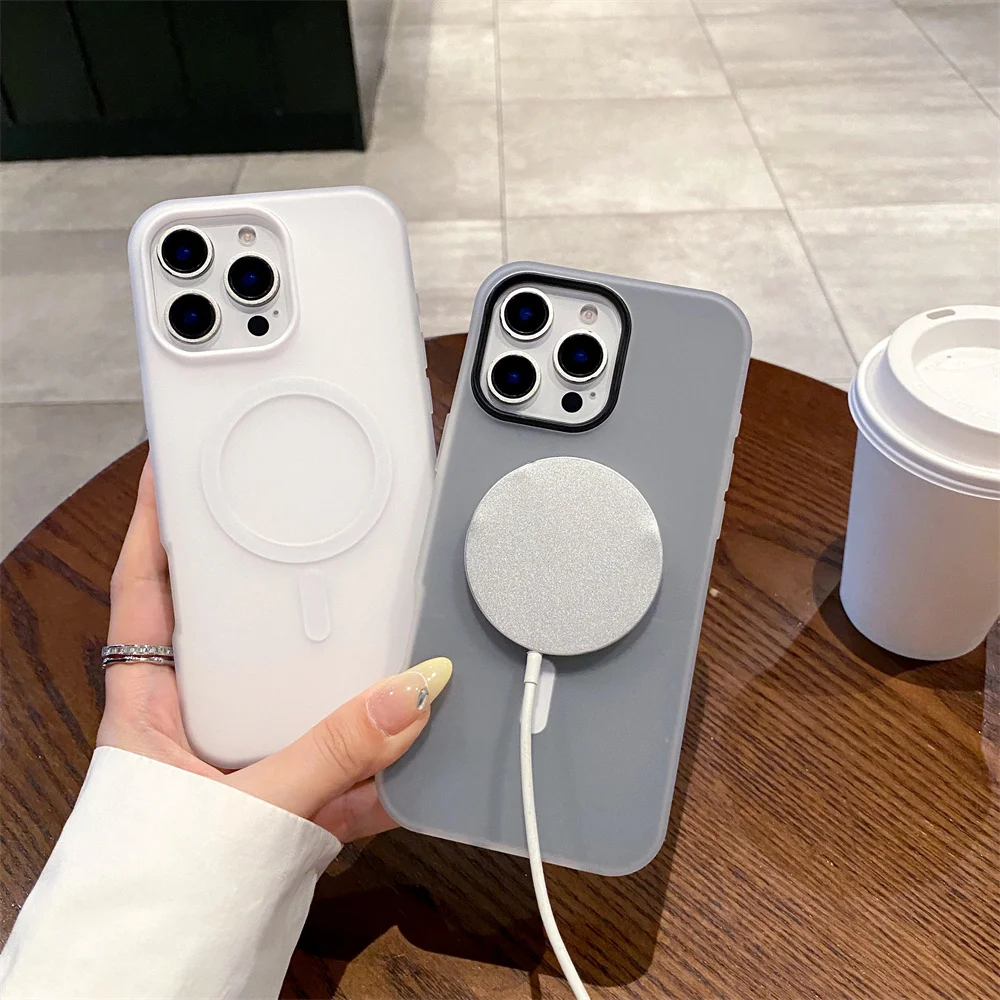 Luxury Matte Magsafe Phone Case For iPhone 11 12 13 14 15 16 17 Pro Max Plus Air Transparent Magnetic Shockproof Bumper Cover
