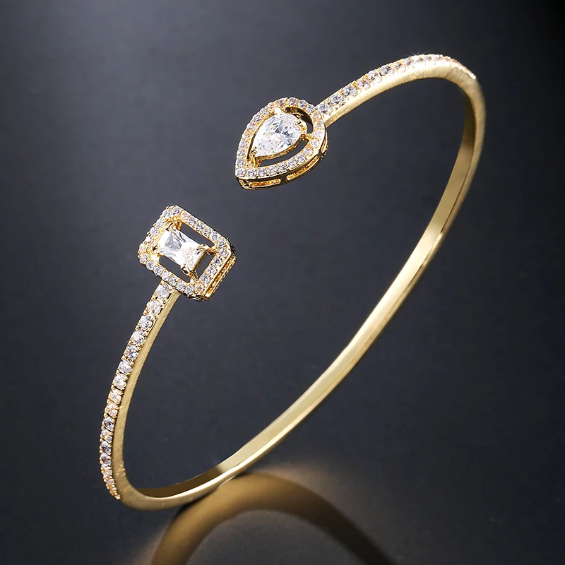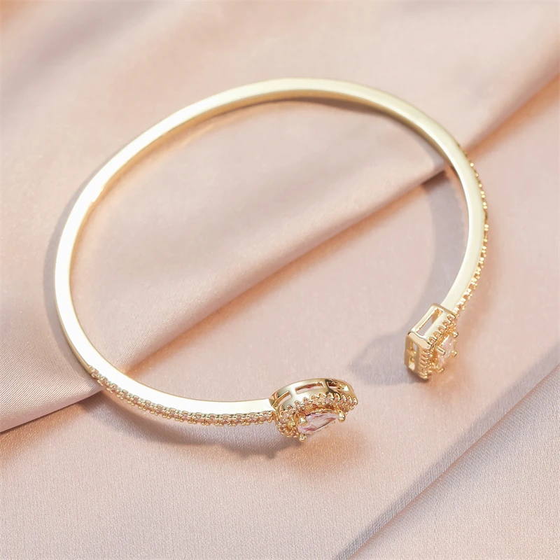 Luxury Geometry Gold Color Cuff Bangles For Women Fashion Cubic Zirconia Bracelets INS Party Everyday Jewlery.