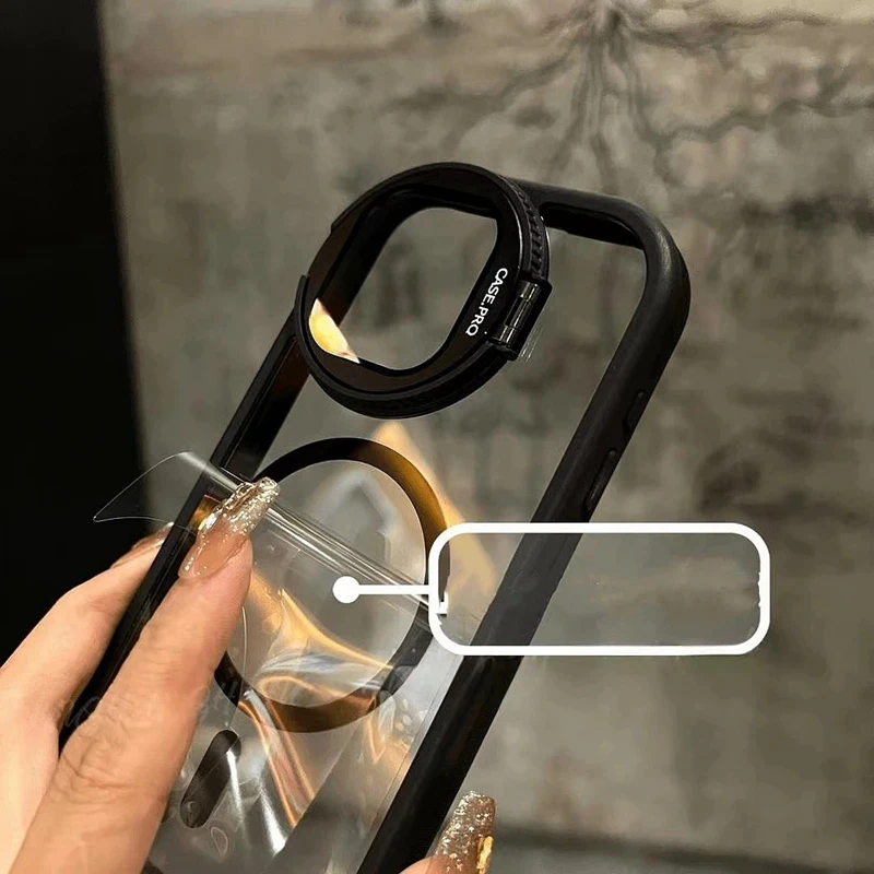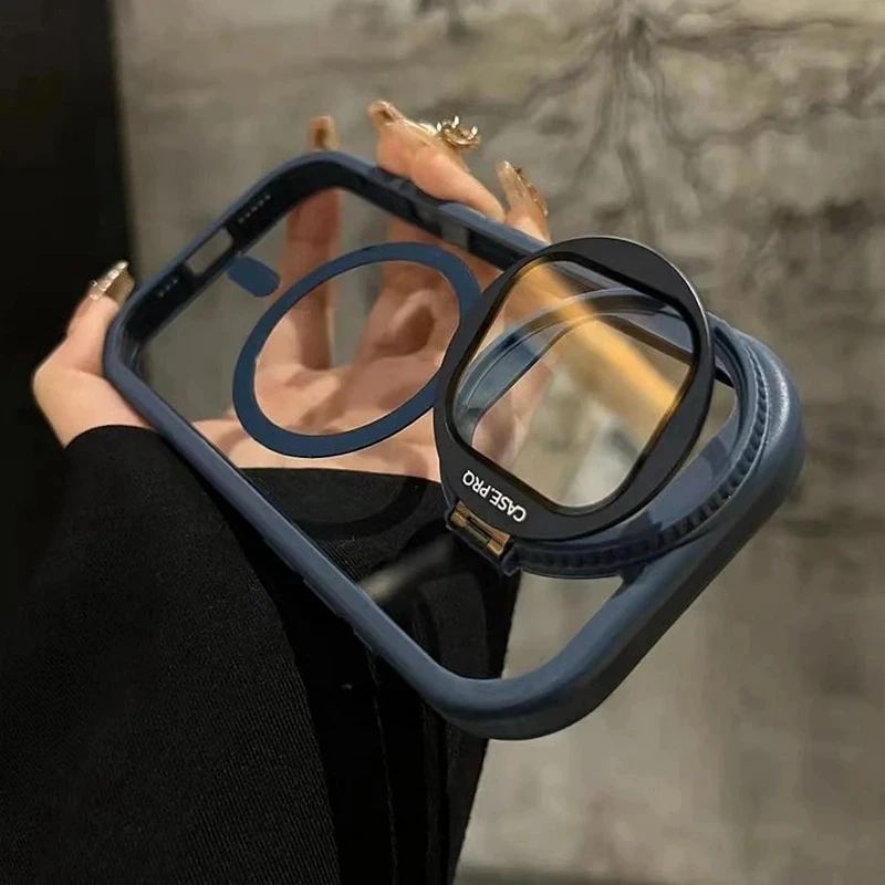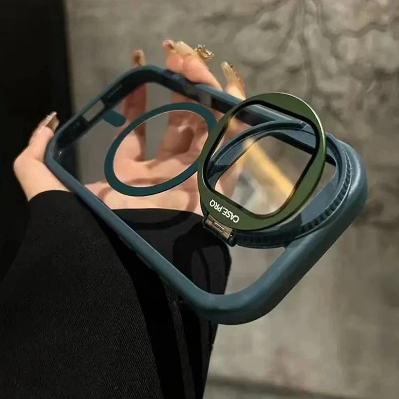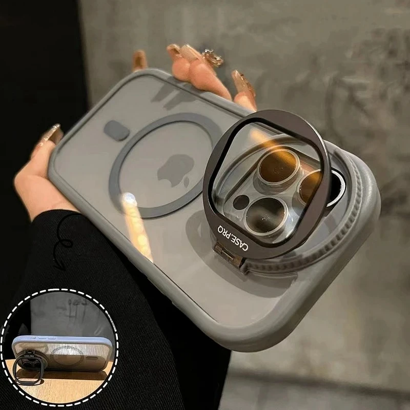 Luxury Magsafe Transparent Phone Case For iPhone 11 12 13 14 15 16 Pro Max Plus Magnetic Kickstand Stand Shockproof Bumper Cover