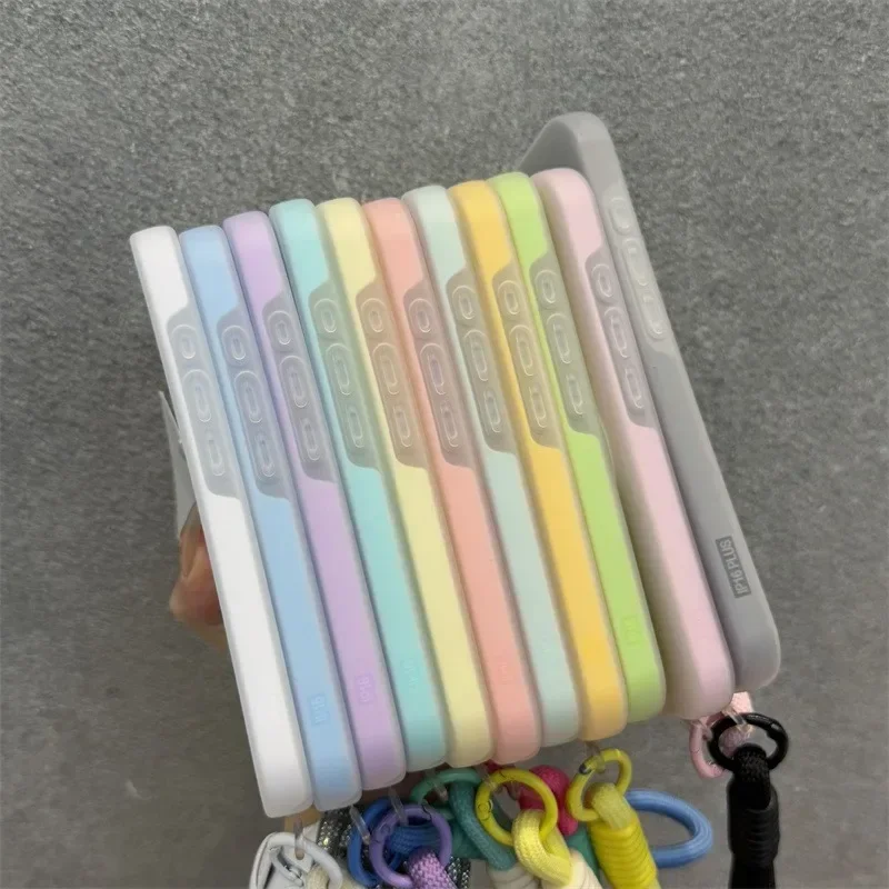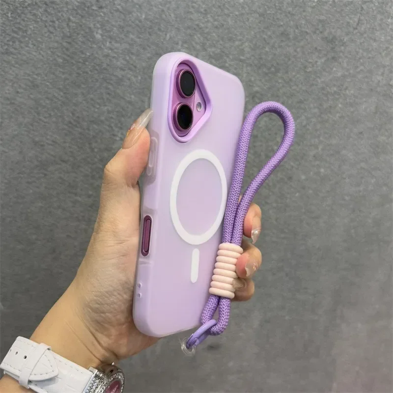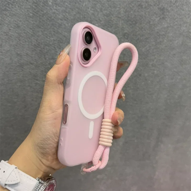 Luxury Soft With lanyard Silicone Magsafe Phone Case for iPhone 16 17 15 14 12 13 Pro Max Plus Wireless Charge Magnetic Cover