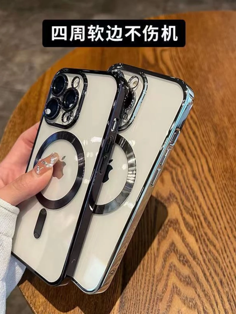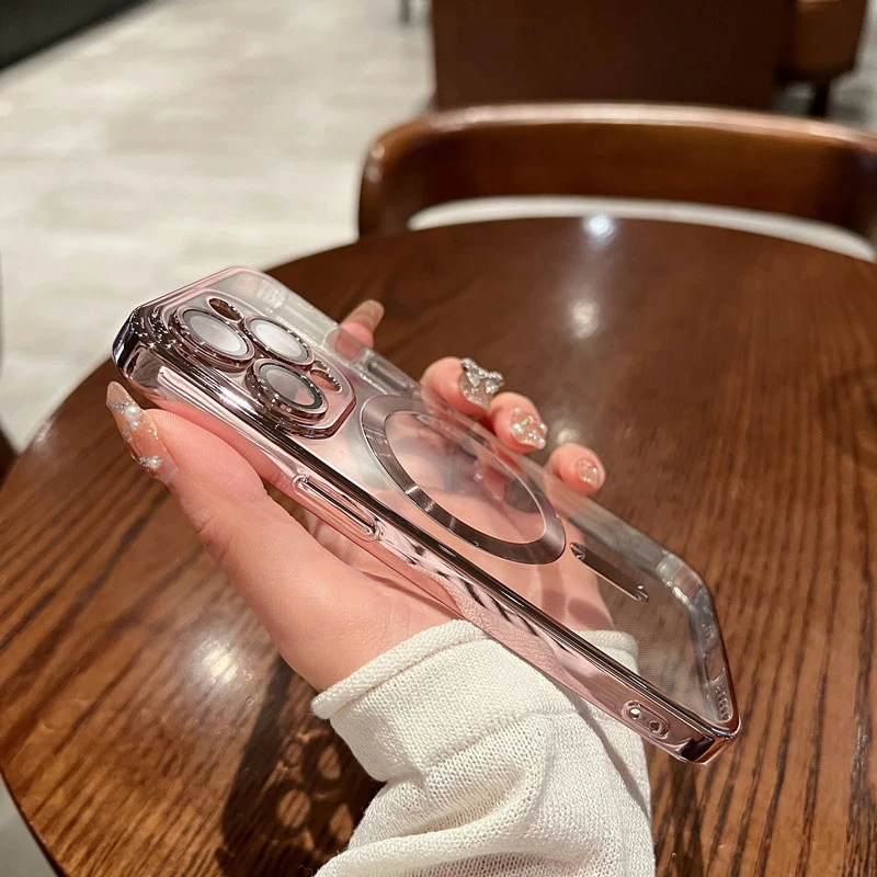 Luxury Wireless Charge Magsafe Phone Case For iPhone 15 14 13 12 11 16 17 Pro Max Plus Air Transparent Magnetic Bumper Cover