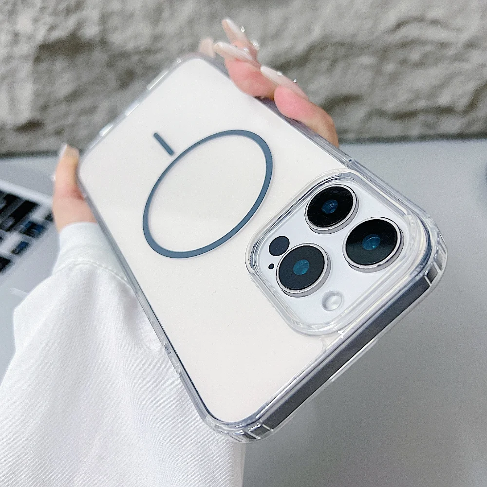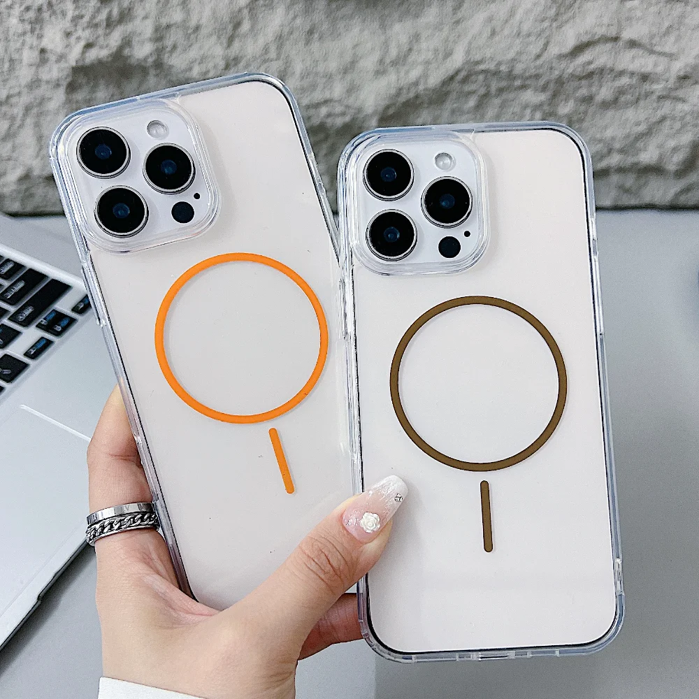 Magnetic Original Clear Case For iPhone 16 16E 15 14 13 12 11 Pro Max Plus Mini XS XR For Magsafe Silicone Transparent Cover