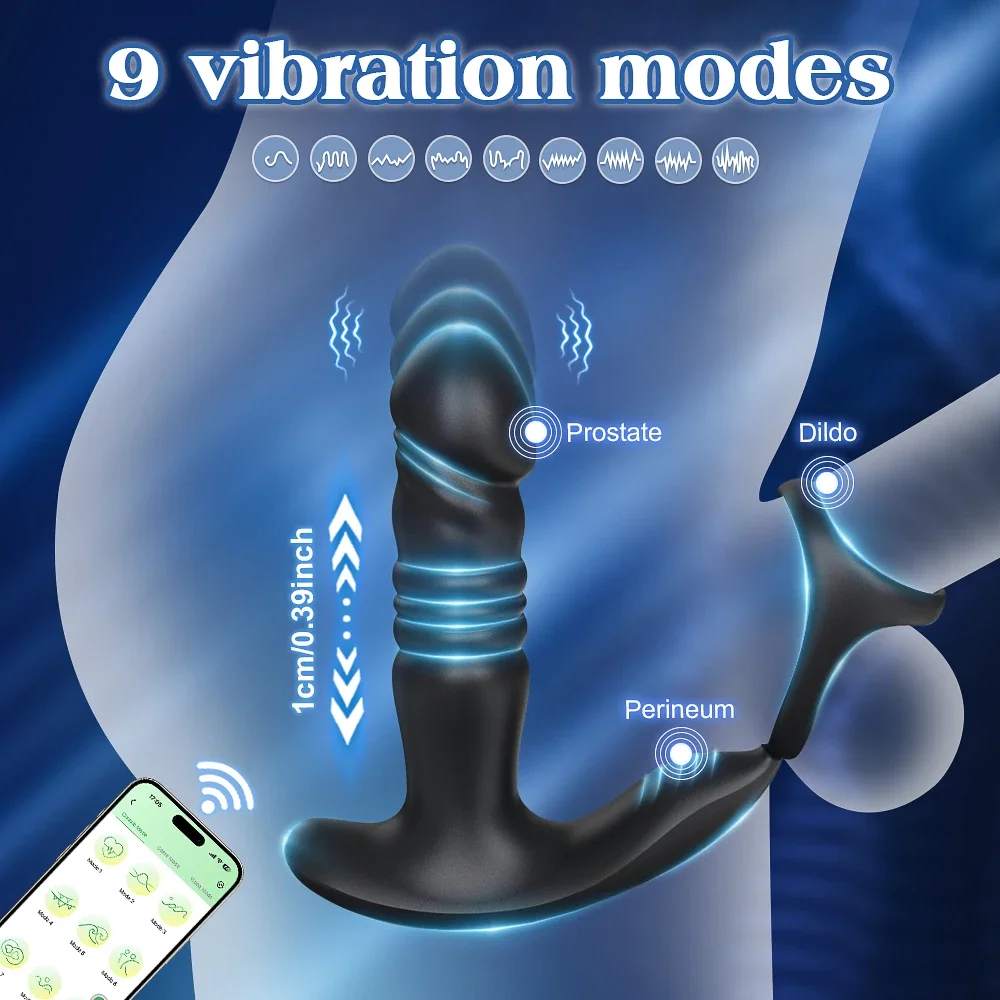Male Thrusting Vibartor Prostate Massager APP Control Vibrator for Men Delayed Ejaculation Cork Ring Butt Plug Sex Toy for Adult