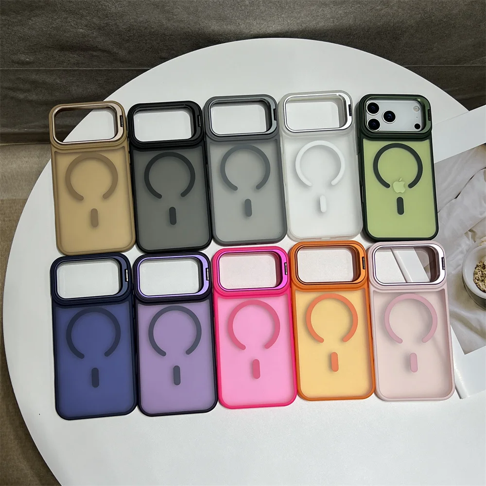 Matte Magnetic Translucent Wireless Charge Stand Case For iPhone 17 Air 16 15 14 13 12 11 17 Pro Max Magsafe Must-Haves Cover