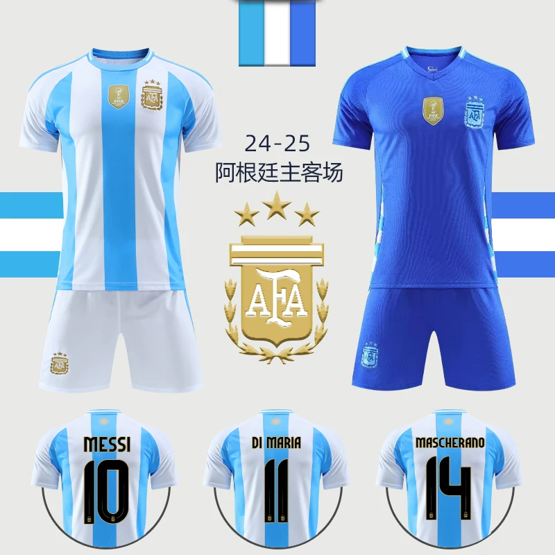 Messi Argentina jersey short-sleeved home and away football uniform suit boys’ national team game training uniform customization