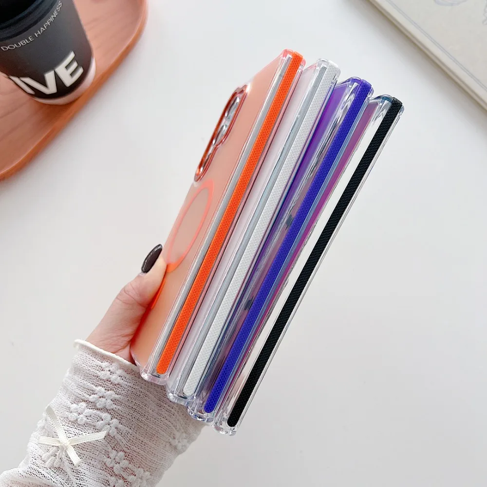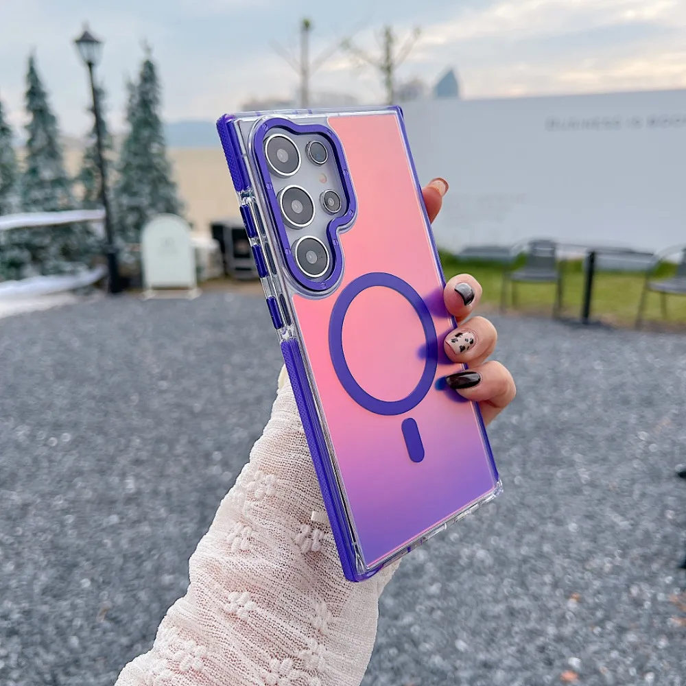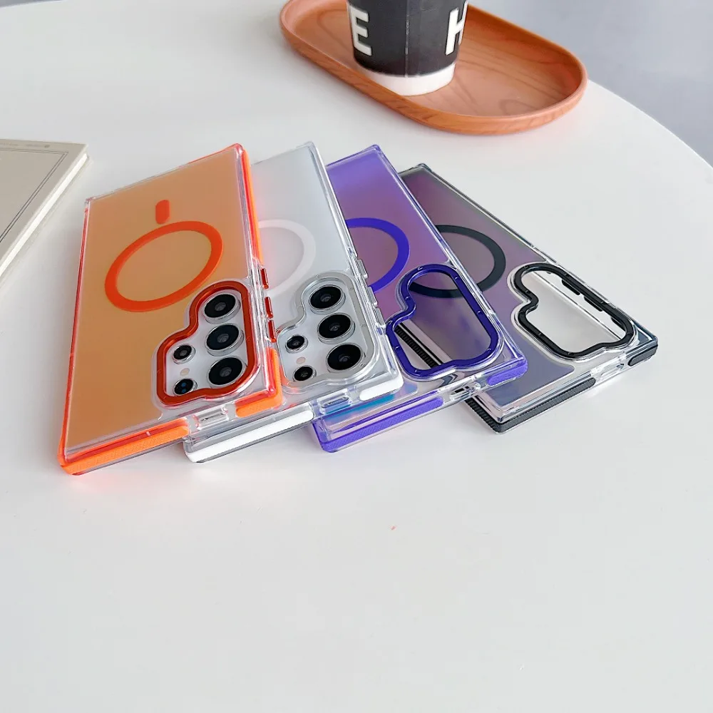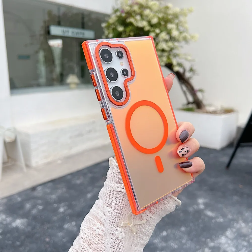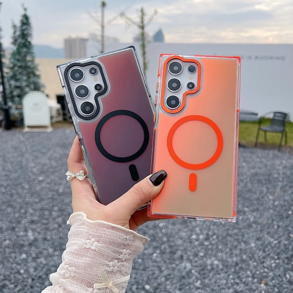 Metal Lens MagSafe Phone Case For Samsung Galaxy S25 S24 Ultra S23 Plus S22 S21 A53 A54 A55 Wireless Charging Discolour Cover