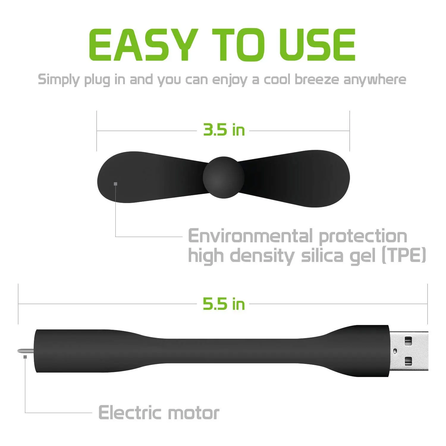 • USB Powered :The fan is powered by a USB port, making it easy to use with your laptop, PC, or power bank.