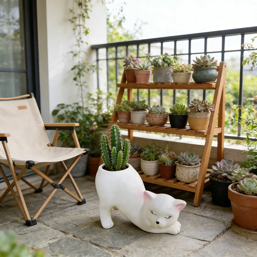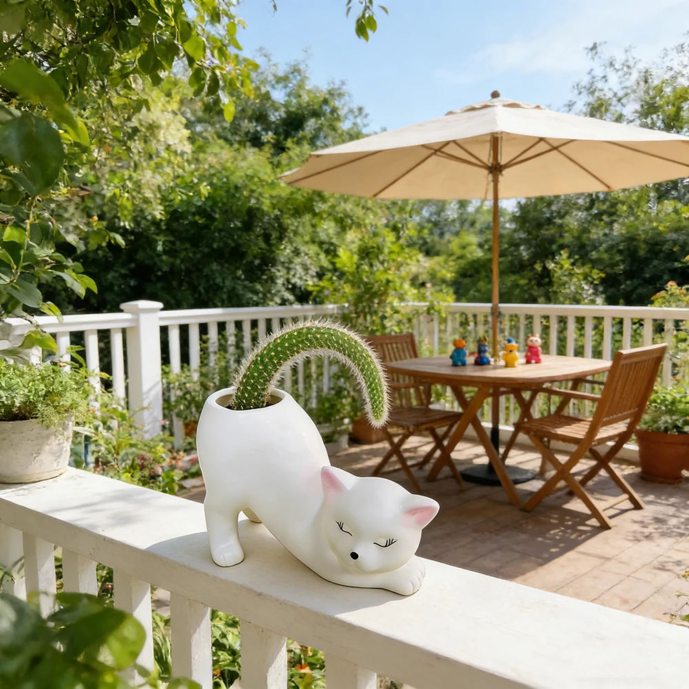 Miniso Cartoon Cute Cat Tail Flower Pot Creative Succulent Plant Cactus Cultivation Garden Courtyard Balcony Decoration Ornament